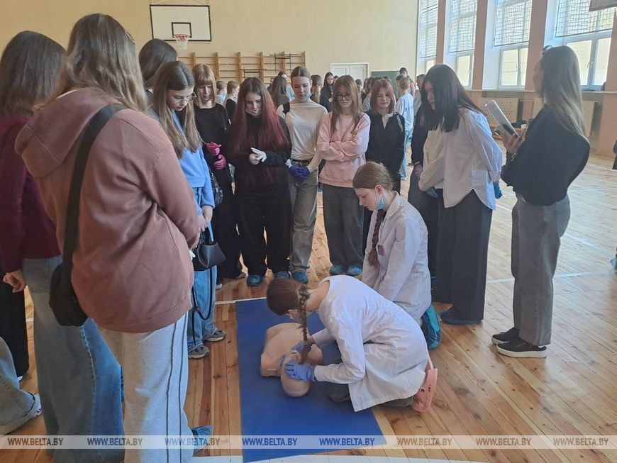Школьники Брестской области 18 апреля приняли участие в акции «Запусти сердце» в Брестском государственном медицинском колледже, передает корреспондент БЕЛТА.