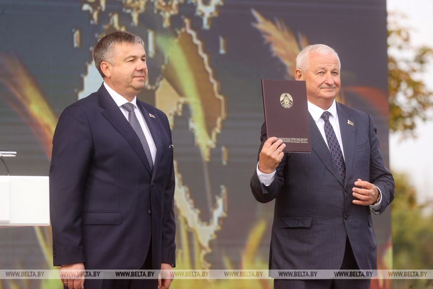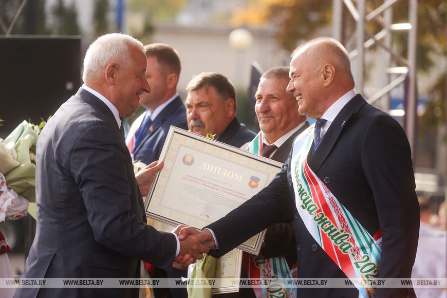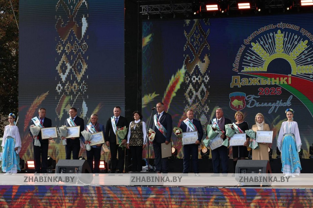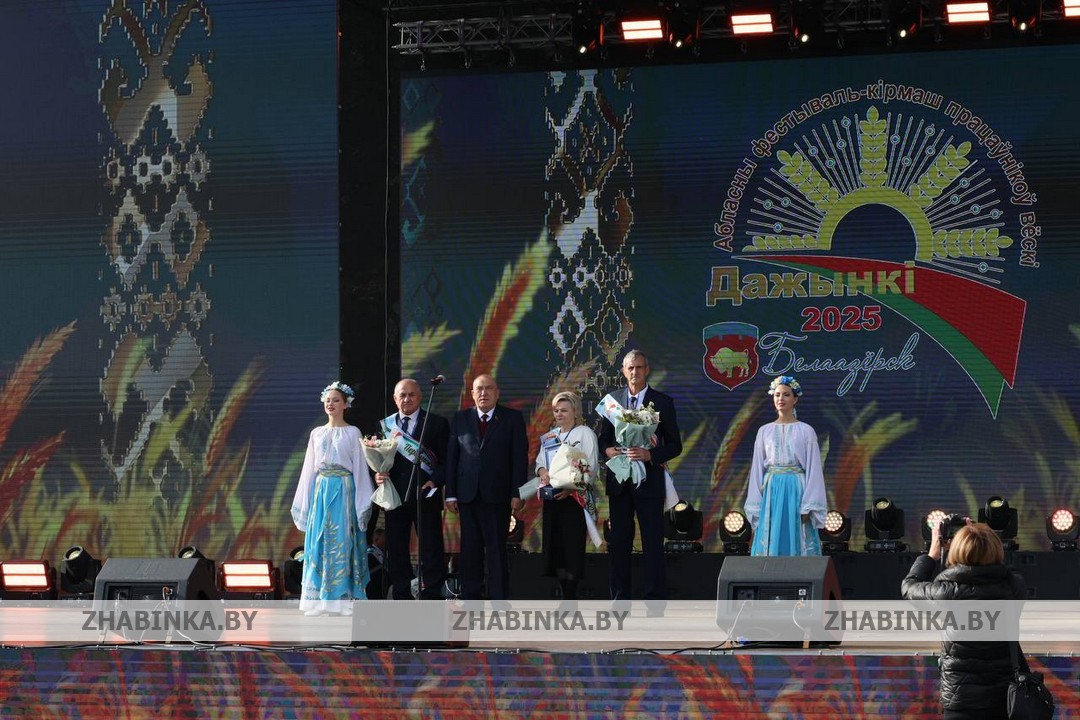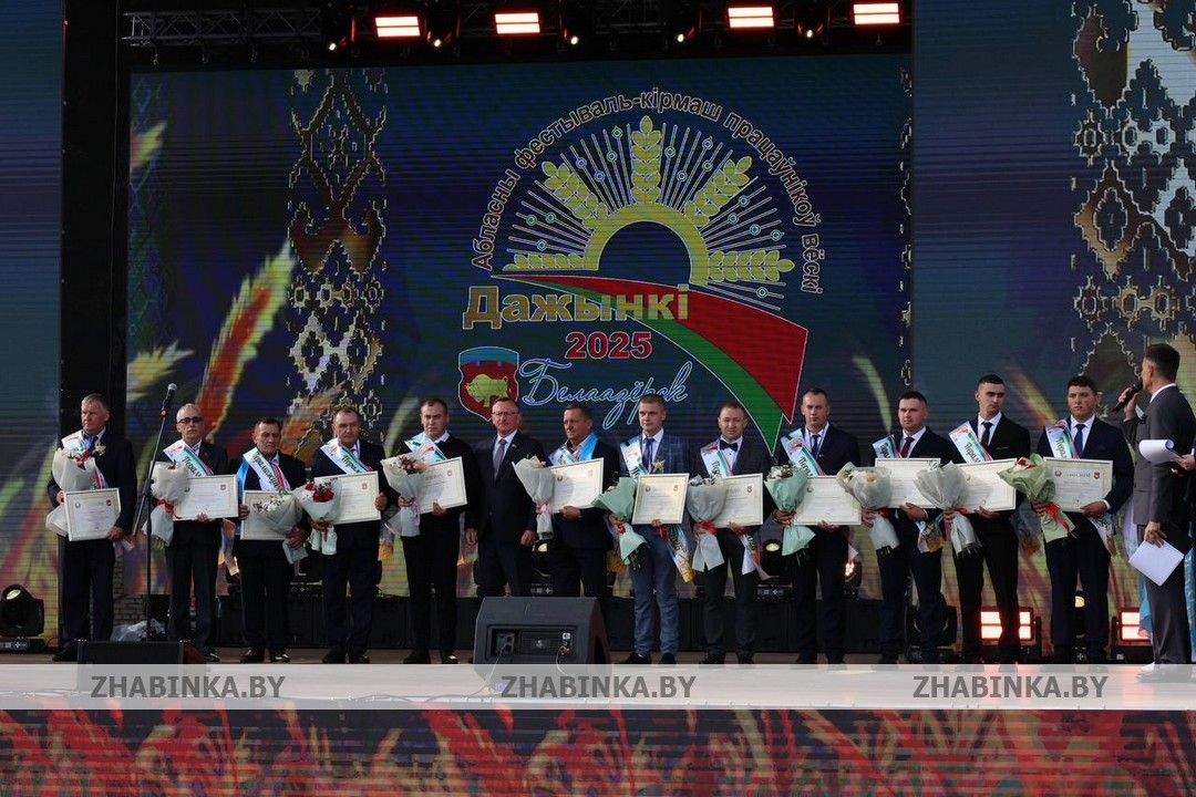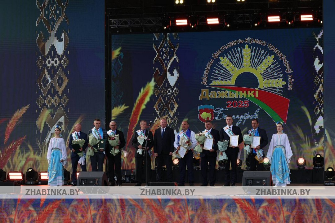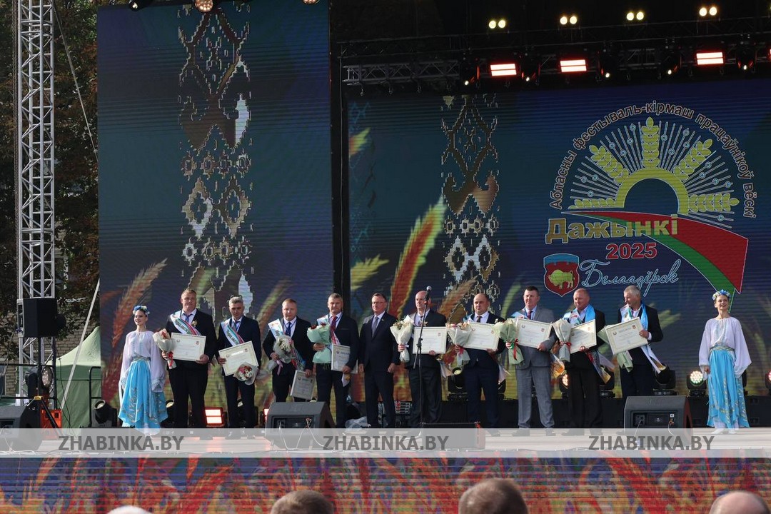 На областном фестивале-ярмарке тружеников села «Дажынкі-2025» в Белоозерске Березовского района аграрии Брестчины получили более 160 заслуженных наград. Среди самых почетных — награды от Президента. Так, председателю СПК «Осовецкий» Дрогичинского района Станиславу Цынкусу заместитель Премьер-министра, уполномоченный Главы государства в Брестской области Юрий Шулейко вручил Благодарность Президента Республики Беларусь.