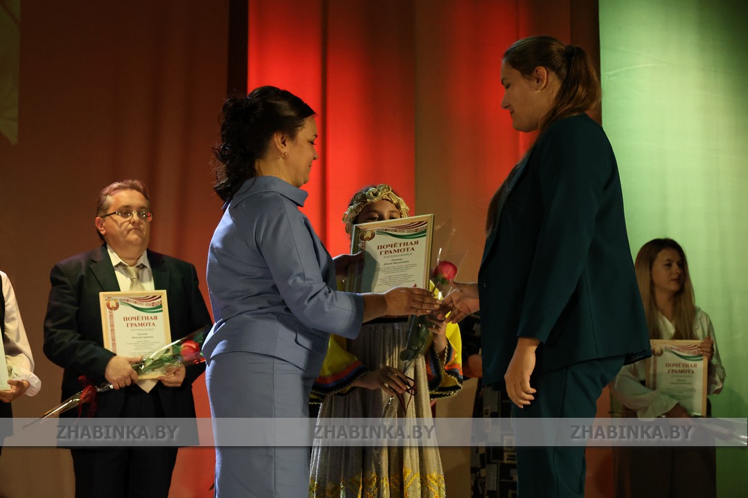 Валентина Вабищевич работает учителем физкультуры в базовой школе д. Малые Зводы Брестского района. Во время летних каникул по доброй традиции подниматся на мостик комбайна и помогает мужу Николаю — работнику местного ОАО «Остромечево» убирать урожай. Не так давно он возглавил отделение «Зводы» родного сельхозпредприятия, но комбайном управляет по-прежнему. На пару с женой. На главной сцене областных «Дажынак» Валентине вручил награду председатель Брестского облисполкома Петр Пархомчик.