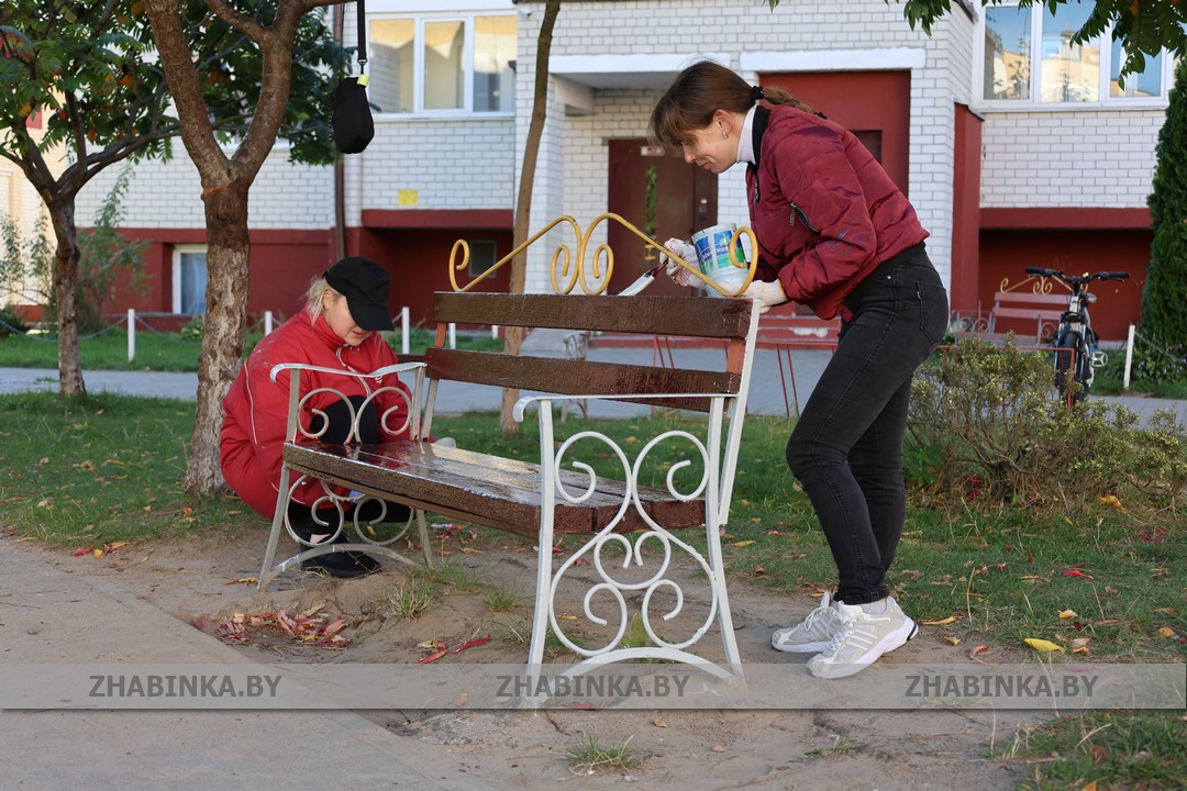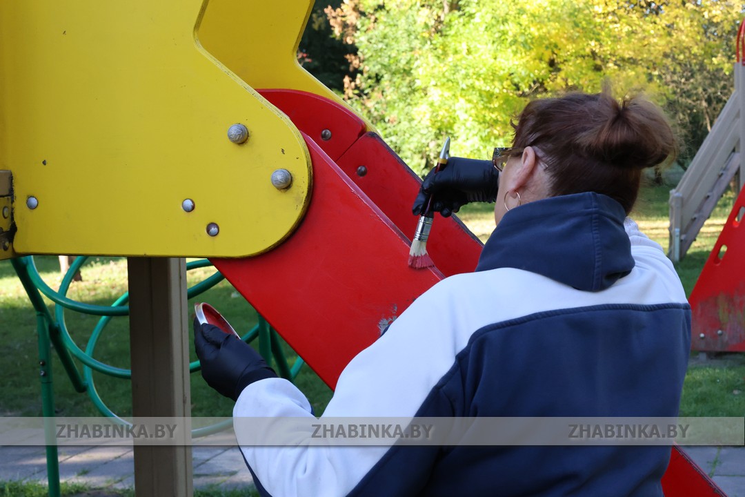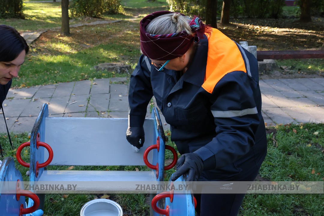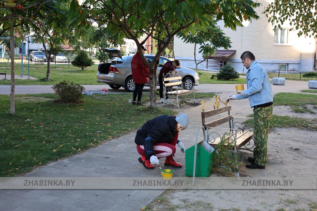 К утру минувшего четверга в микрорайоне сахарного завода собирается трудовой десант в соответствующей предстоящему мероприятию экипировке. «Сама из Бреста, работаю в Жабинке, тут у меня живут родственники, для них стараюсь» поясняет одна из женщин. Заместитель директора районного ЖКХ Ольга Баранова выдаёт каждому всё необходимое: краску, кисточку, валик, средства индивидуальной защиты.