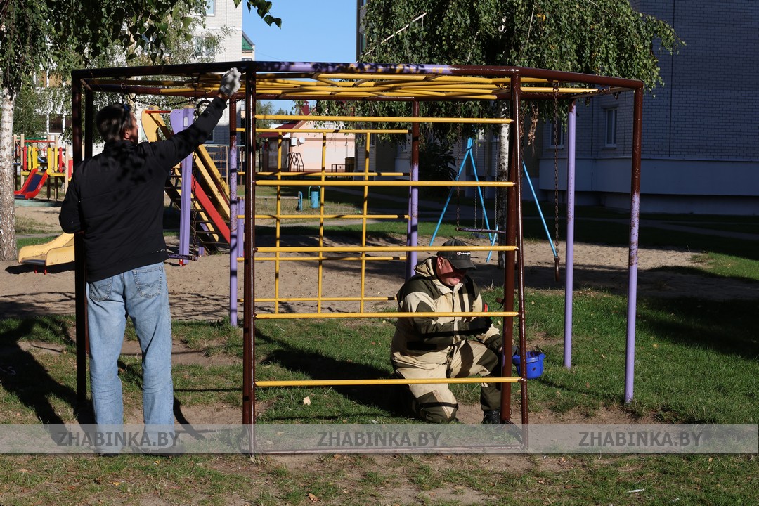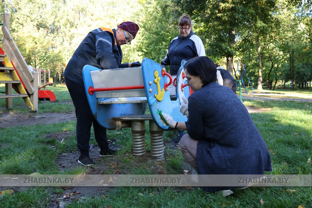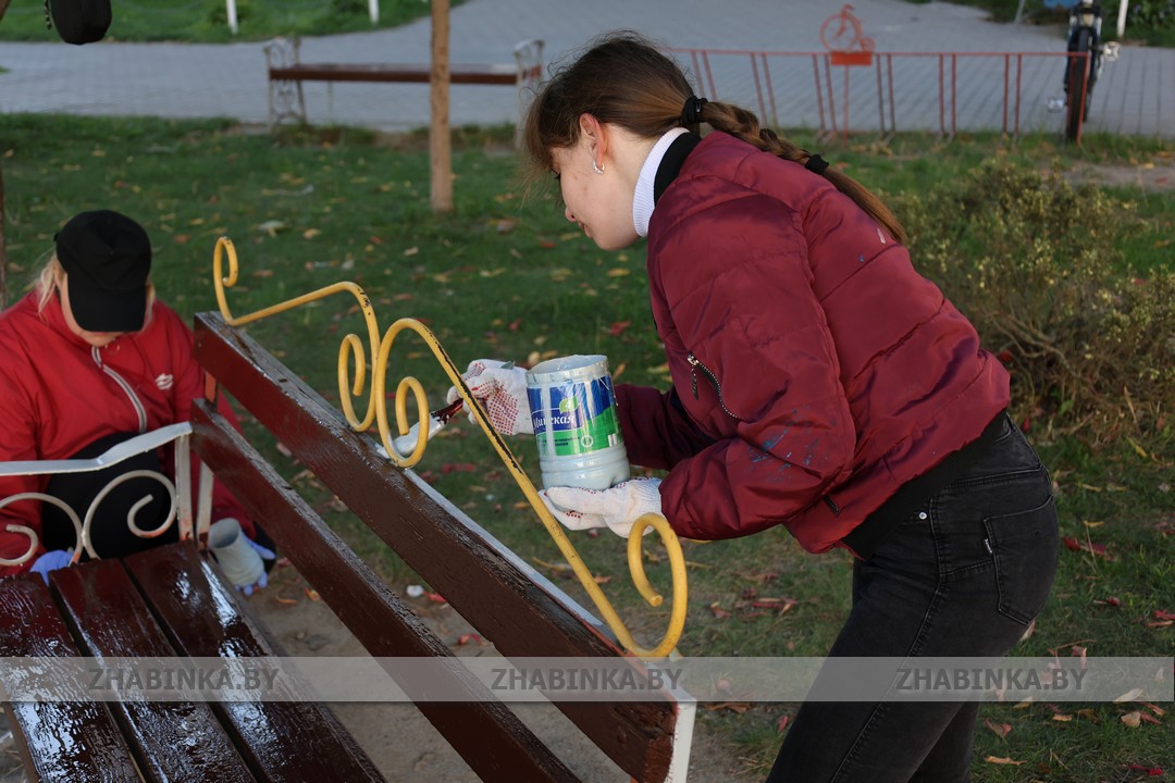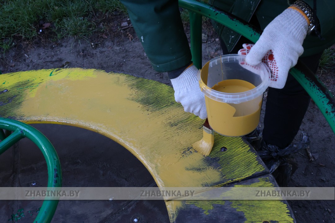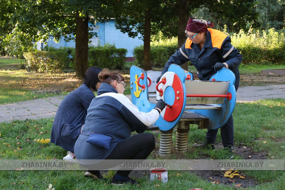 К утру минувшего четверга в микрорайоне сахарного завода собирается трудовой десант в соответствующей предстоящему мероприятию экипировке. «Сама из Бреста, работаю в Жабинке, тут у меня живут родственники, для них стараюсь» поясняет одна из женщин. Заместитель директора районного ЖКХ Ольга Баранова выдаёт каждому всё необходимое: краску, кисточку, валик, средства индивидуальной защиты.
