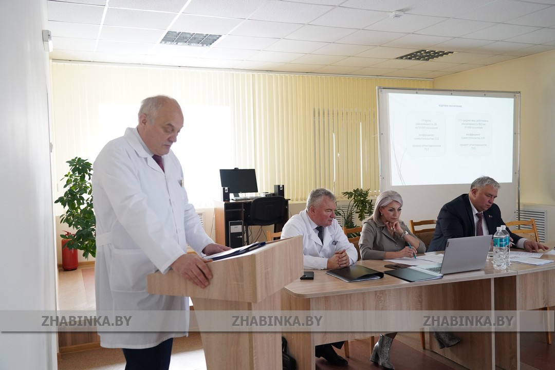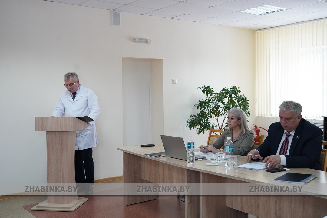 В роли содокладчиков выступили главный врач Жабинковской ЦРБ Иосиф Орловец и его заместитель по медицинской части Виталий Велько.