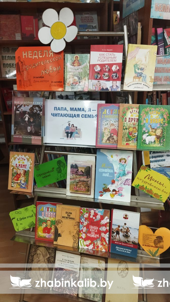 Ведущая библиотекарь Ирина Самосюк поздравила присутствующих, зачитав стихи: «У матерей святая должность» (Р. Рябец) и «Красивые мамы» (С. Богомазов), и провела обзор книжной выставки «Папа, мама, я – читающая семья».