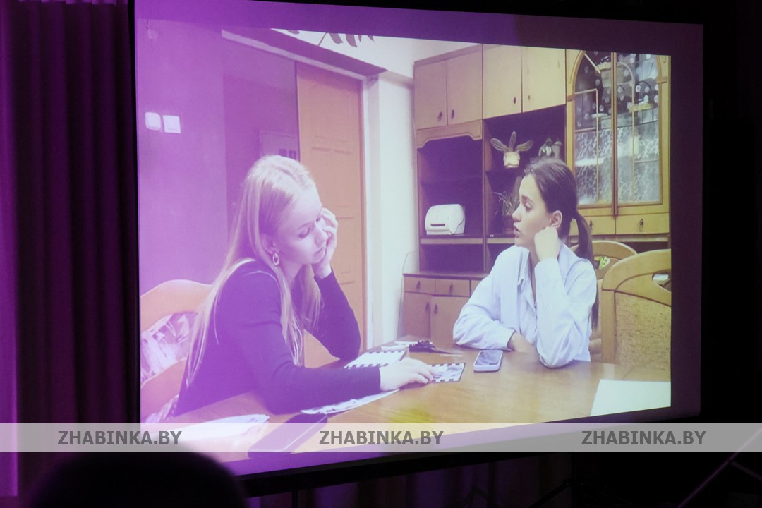 Затем ведущая предложила присутствующим посмотреть и обсудить видеорепортажи телеканала «Беларусь4»: «Дорога к Победе. Освобождение Жабинковского района» и «Несожжённая память. Дремлёво».