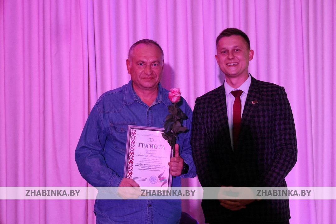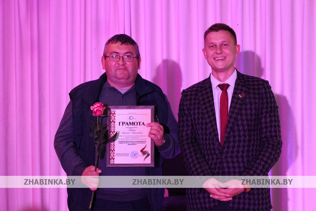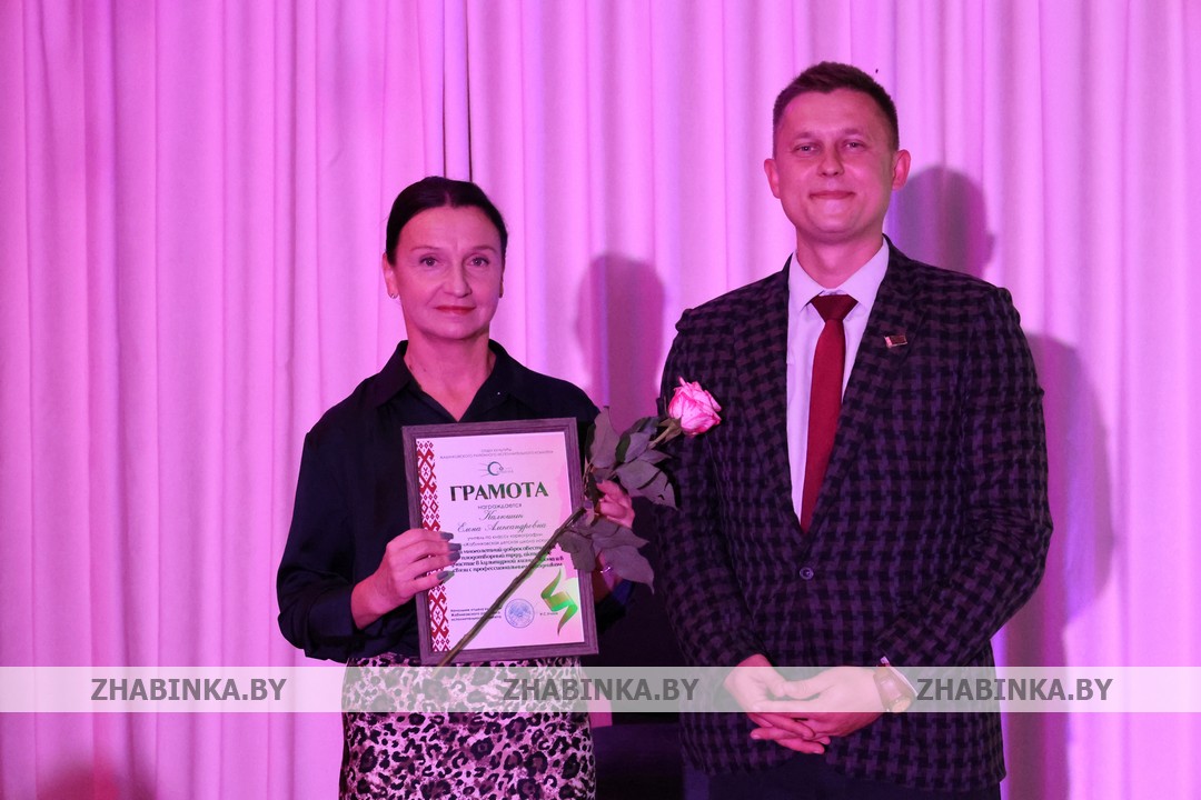 Первым церемонию награждения провёл председатель Жабинковского районного Совета депутатов Андрей Юруть. Вначале целый ряд педагогов Жабинковщины лично из рук Андрея Иосифовича получили грамоты и благодарственные письма райисполкома. А затем руководитель депутатского корпуса района вручил Почётные грамоты Жабинковского районного Совета депутатов отличившимся представителям педагогической когорты. Это стало оценкой их многолетнего и добросовестного труда. Наградами были отмечены достижения высоких результатов в работе в связи с празднованием Дня учителя.