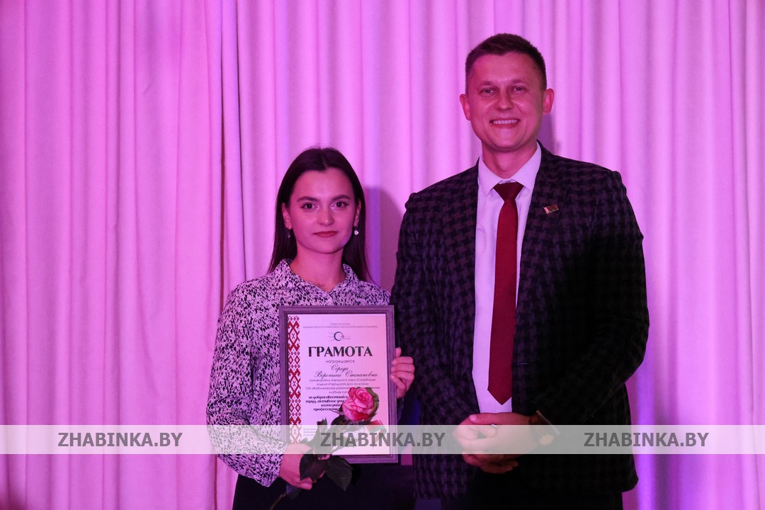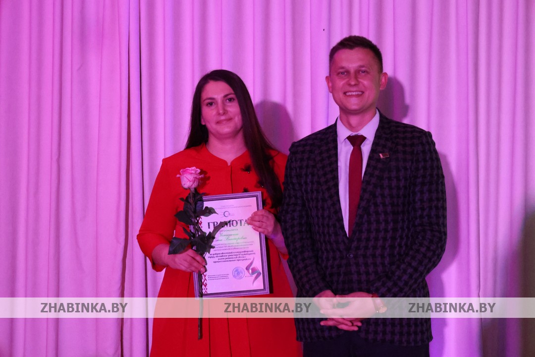 Она продолжила торжественную церемонию, к примеру, поздравила коллег с наступающим профессиональным праздником и вручила почётные грамоты отдела по образованию. Ольга Владимировна выполнила ещё одну приятную миссию, наградив ряд представителей педагогической профессии грамотами и благодарностями Жабинковского районного комитета Белорусского профессионального союза работников образования и науки. Свои заслуженные награды получили и ветераны-наставники.