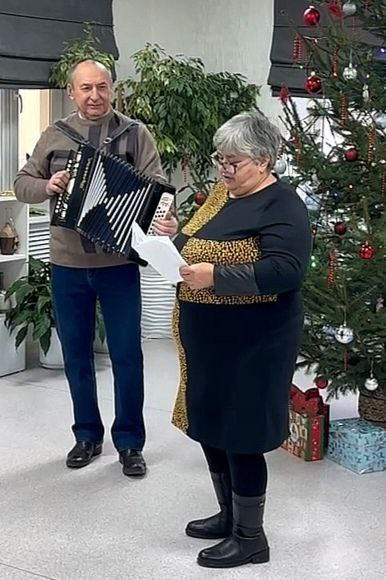 того, Татьяна Фёдоровна под аккомпанемент мужа на гармони исполнила песню «Зима»