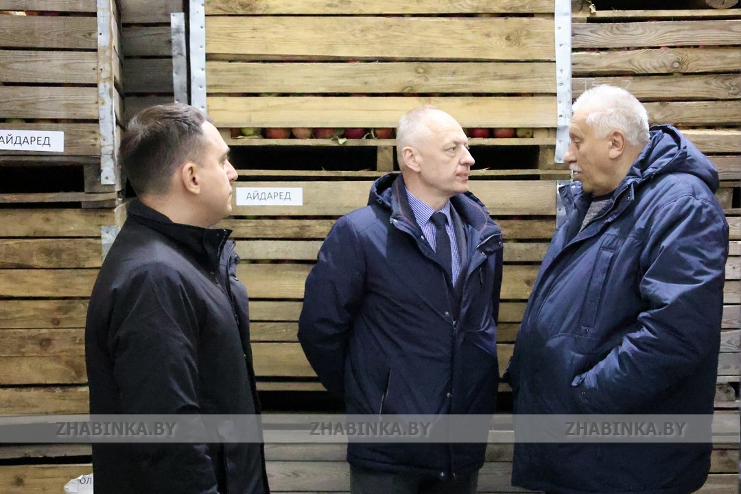 В рамках поездки Артур Карпович начал день с визита в фермерское хозяйство «Яквил», расположенное в д. Федьковичи. Глава хозяйства, Виктор Яковчук, подробно познакомил Министра с деятельностью предприятия, провел экскурсию по производственным площадкам. Во время визита также обсудили ход закладки плодоовощной продукции (яблоки) в стабфонды.