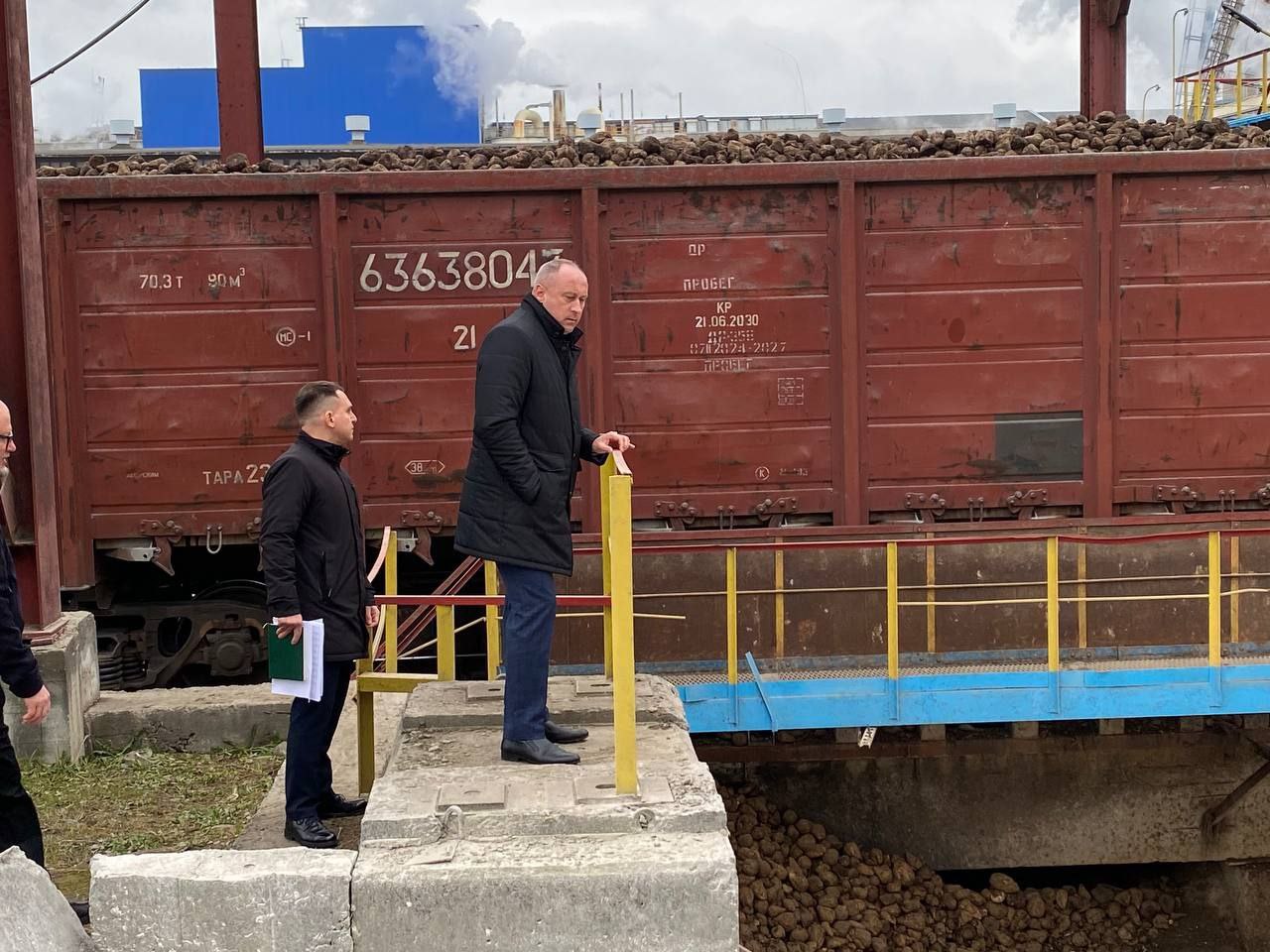 Александр Зиновьевич ознакомился с ходом заготовки и переработки сахарной свёклы, побывал на свеклопункте, где осмотрел основные этапы приёма сырья. Также он изучил железнодорожную инфраструктуру и мощности, обеспечивающие транспортировку свёклы на переработку.