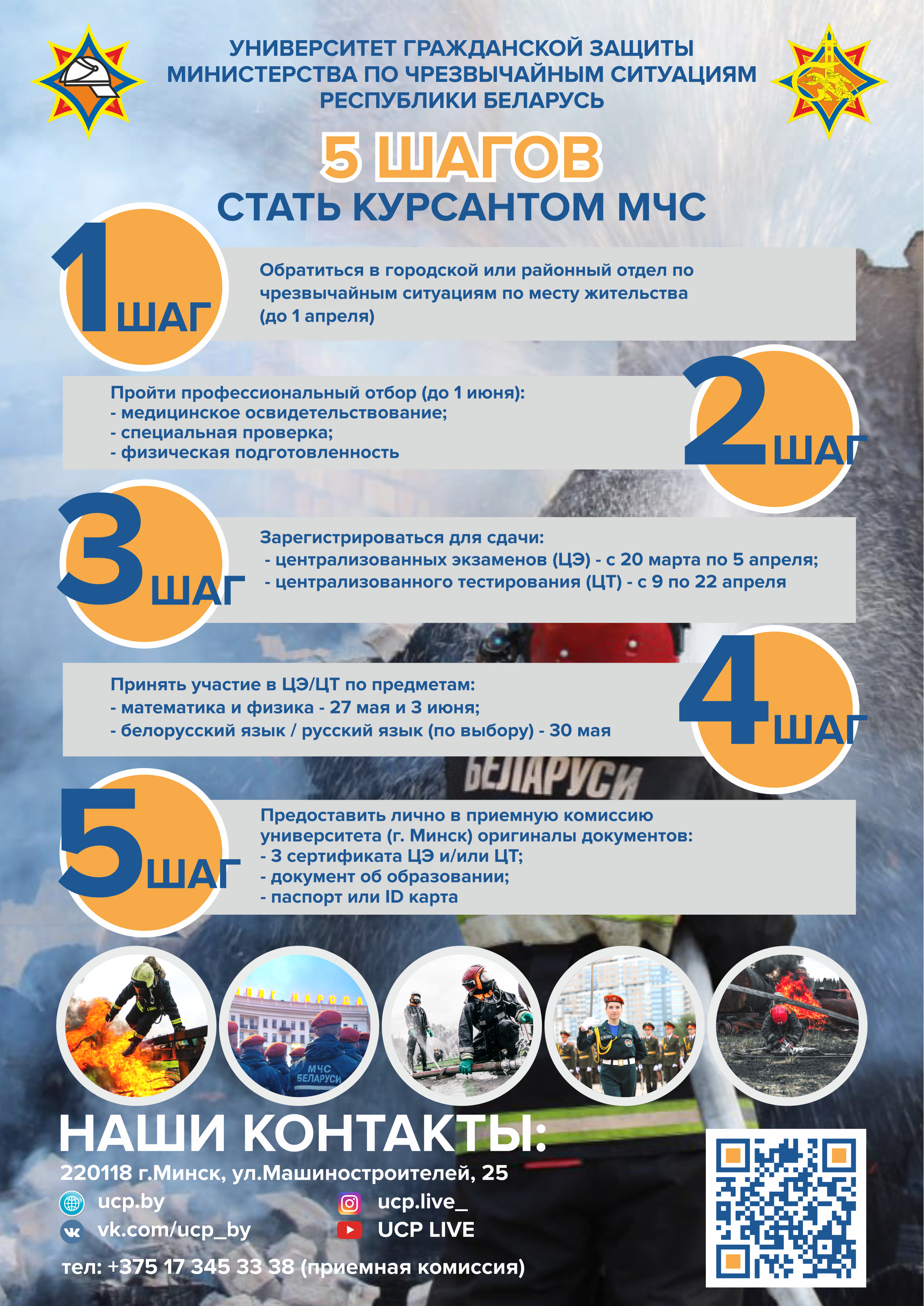 С условиями поступления можно ознакомиться, обратившись в районный отдел по чрезвычайным ситуациям по телефону (60510, 35407) или на официальном сайте