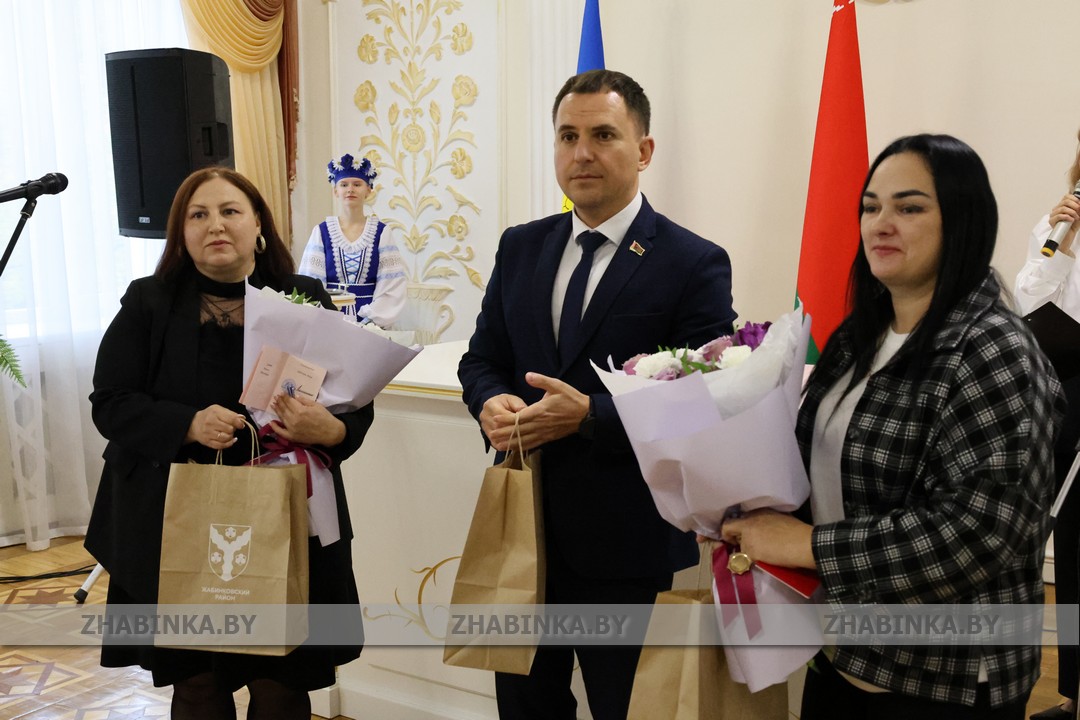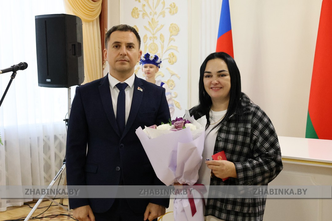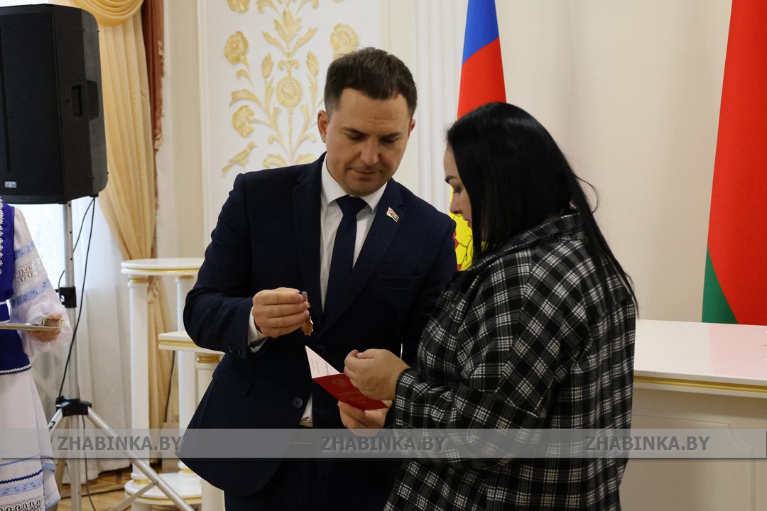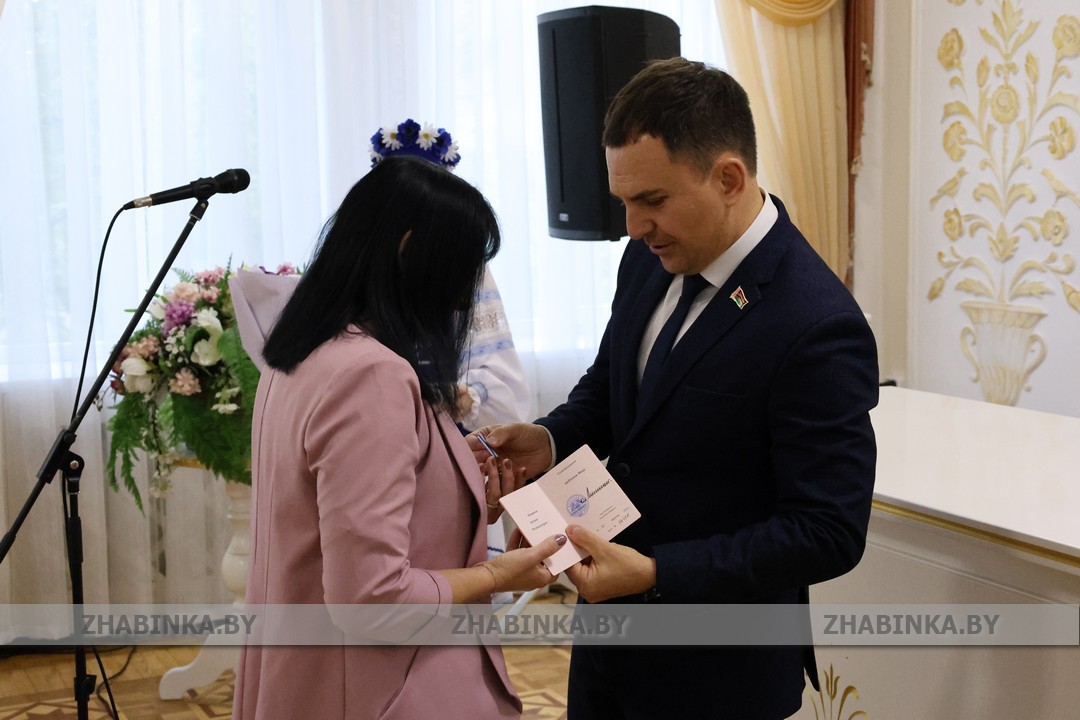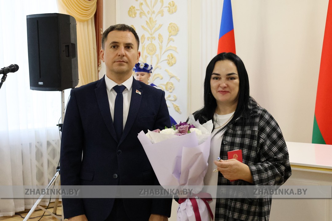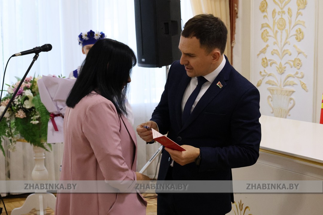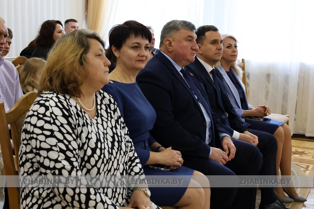 Мероприятие состоялось в торжественной обстановке в зале для праздничных церемоний отдела загса Жабинковского райисполкома. В числе почётных гостей присутствовали председатель районного исполнительного комитета Андрей Кузьмич и его заместитель Инна Тарасевич, глава депутатского корпуса нашего района Андрей Юруть, начальник управления по труду, занятости и социальной защите Жабинковского райисполкома Татьяны Маринич и