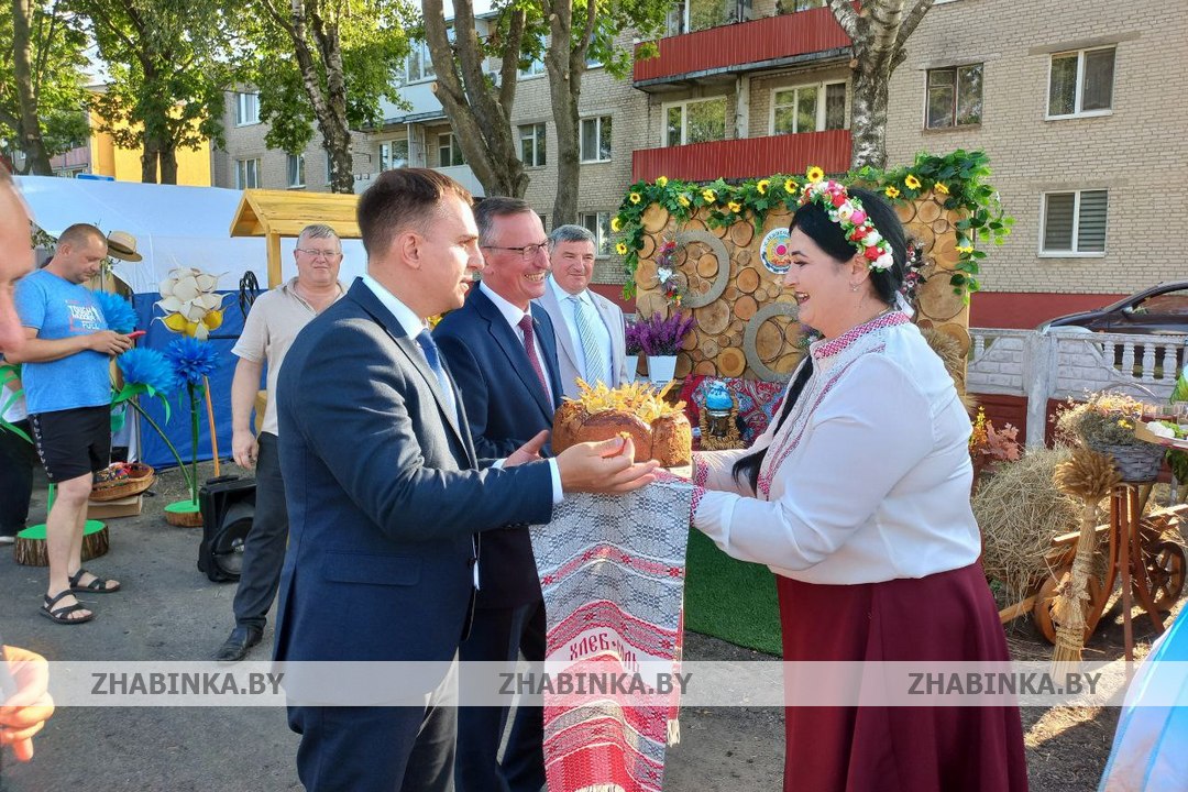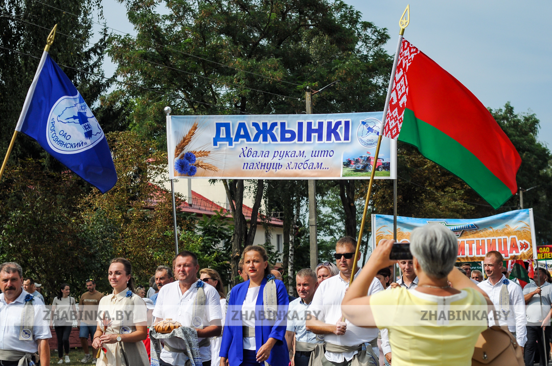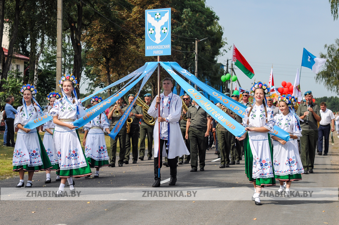 В праздничной колонне прошли председатель райисполкома Андрей Кузьмич, глава районного депутатского корпуса Андрей Юруть, первый заместитель начальника управления по сельскому хозяйству и продовольствию райисполкома Виктор Максимук, председатель Жабинковского райкома профсоюза работников АПК Любовь Коберна, руководители сельскохозяйственных и перерабатывающих предприятий района, передовики уборочной кампании.