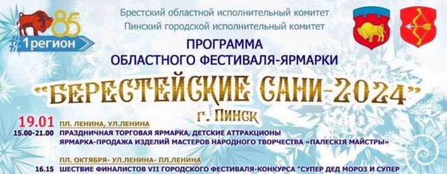 С 19 по 21 января в Пинске пройдет областной фестиваль-ярмарка «Берестейские сани – 2024», в связи с чем, в городе ожидается наплыв гостей, творческих коллективов, представителей организаций, предприятий, учреждений.
