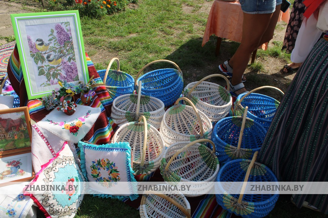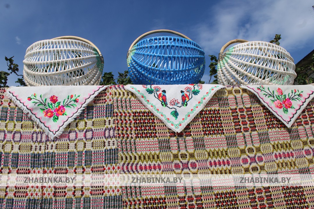 Творчыя людзі сустракалі хмелеўскіх артыстаў і на наступным падворку. Раіса і Васіль Шахнюкі ўразілі выставай вышыванак, карцін, рушнікоў, створаных рукамі гаспадыні, і… кошыкаў, якія пляце гаспадар.