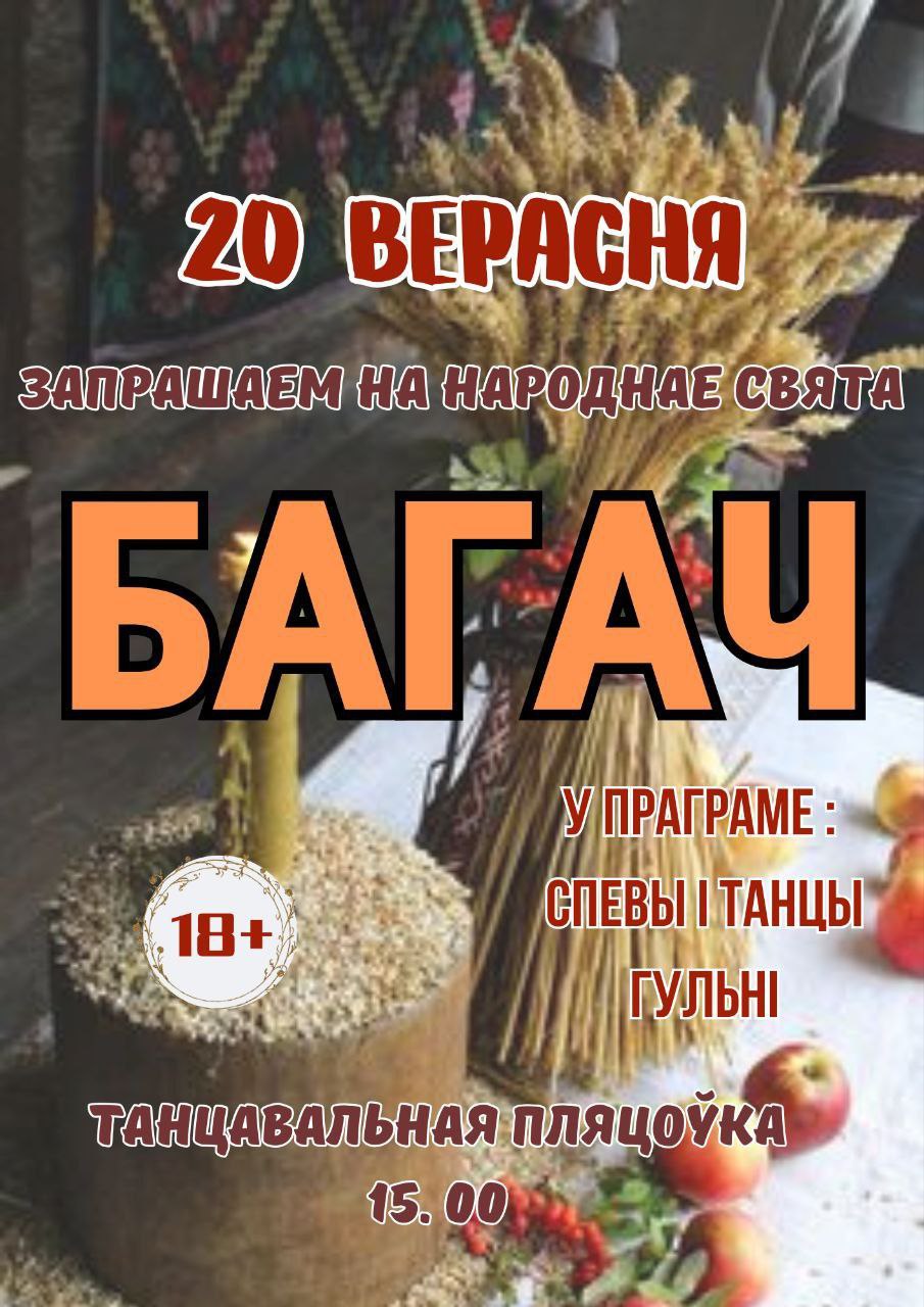 Приглашаем вас окунуться в атмосферу старинного белорусского праздника — «Багача»! Это настоящий праздник урожая, который наши предки отмечали по окончании жатвы.