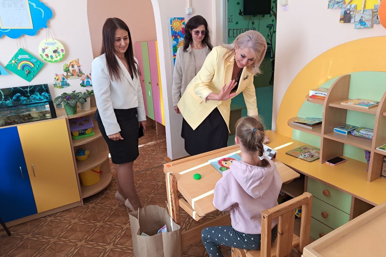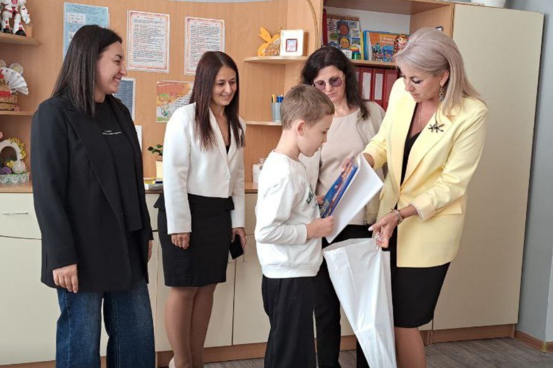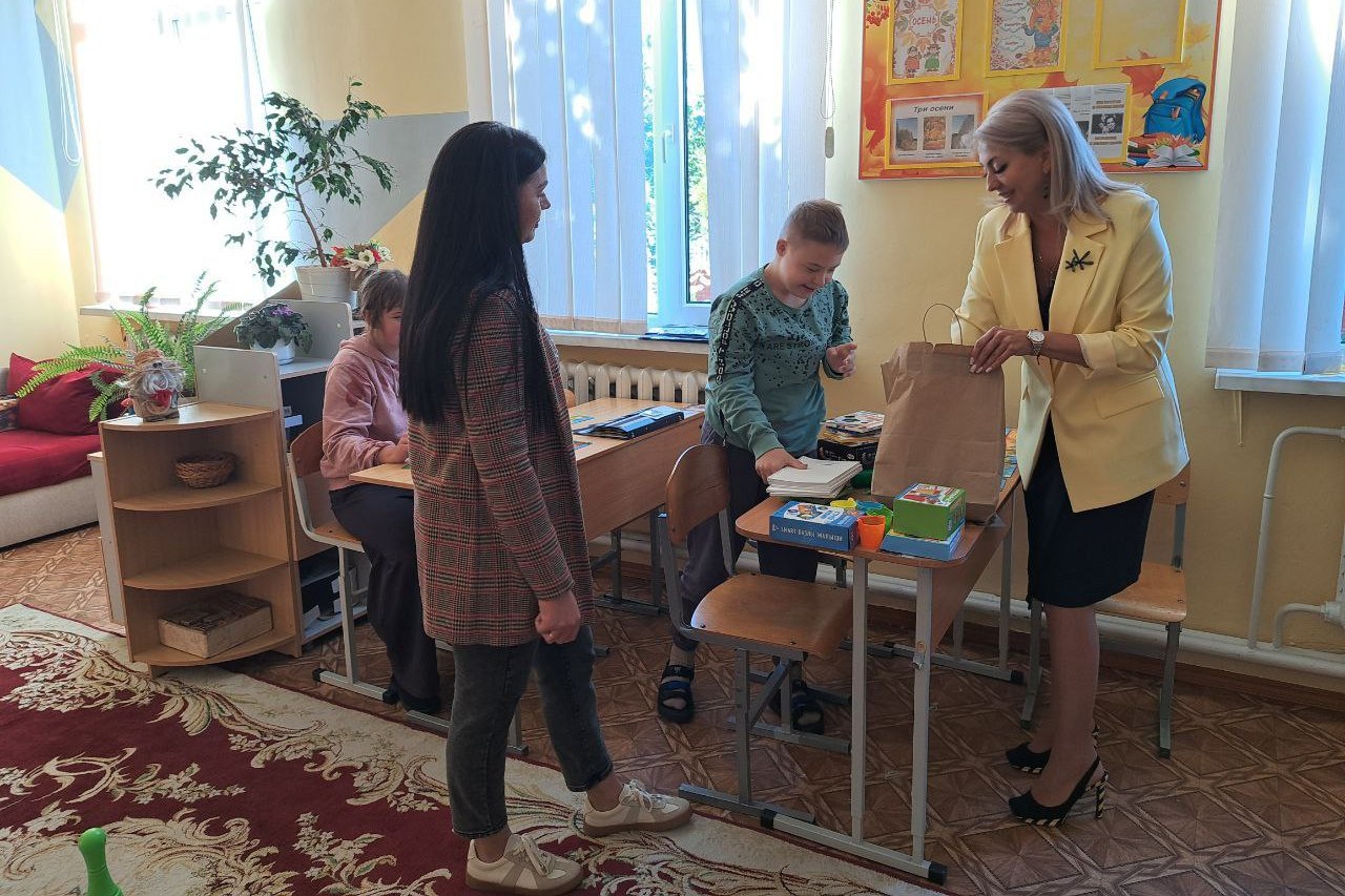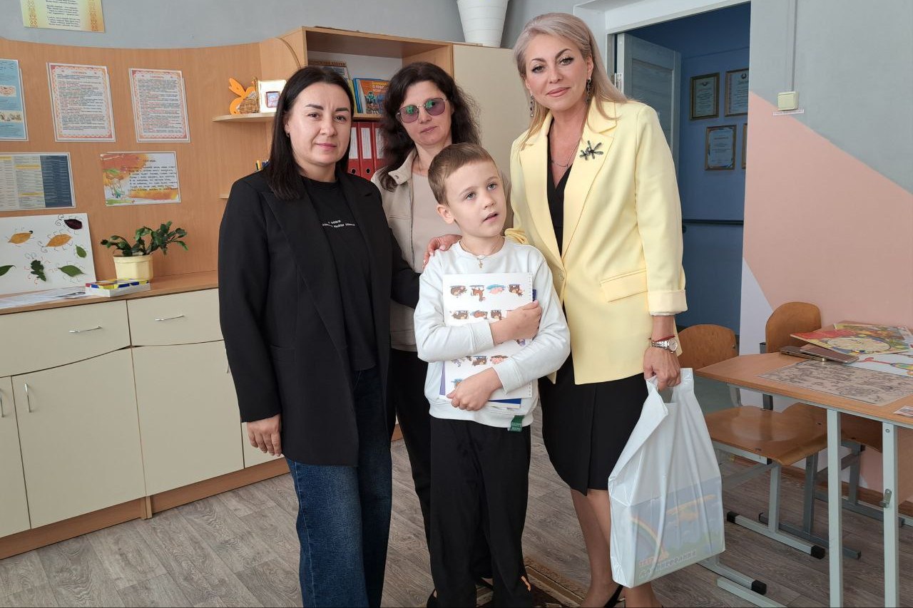 Инна Владимировна лично вручила детям наборы канцелярских принадлежностей и развивающие игры.