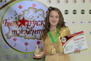 А любімая песня Аляксандры “Ноч. Зоркі. Джаз” прынесла ёй днямі чарговую перамогу на IV адкрытым конкурсе мастацтваў “Беларускія таленты” ў намінацыі “Эстрадны вакал. Сола. 11 гадоў”.Дзяўчынка стала дыпламантам І ступені (на здымку).