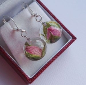 Вырабы жыхаркі Жабінкі Надзеі Бадровай убачыла ў сацыяльных сетках. Мяне ўразілі яе ўпрыгажэнні — эфектныя і стыльныя завушніцы, кулоны і брошкі, выкананыя ў тэхніцы аб’ёмнай заліўкі. У кропельках празрыстай смалы застылі розныя кветкі: ружы, незабудкі, бяссмертнікі, валошкі, дзьмухаўцы, гартэнзіі ды іншыя краскі лета. Здаецца, нібы трапілі яны ў палон халодных ільдзінак. А з надыходам першага вясновага цяпла лёд растане, кветкі ажывуць і напоўняць сваім водарам наваколле…