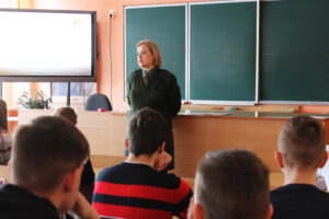 Военные посетили городские учреждения образования и провели уроки мужества. Например, психолог воинской части 97061 капитан Татьяна Феденко выступила перед старшеклассниками третьей школы. Она подготовила для ребят интересный рассказ об особенностях жизни военного человека.