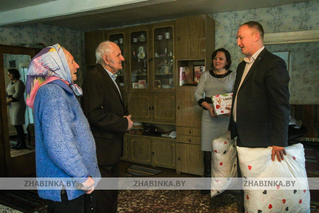 26 января «железным» юбилярам, чья совместная жизненная дорога выдержала многие испытания, зато подарила бесчисленные мгновения радости и семейного счастья, искренне желали счастья и крепкого здоровья председатель Ленинского сельисполкома Николай Луговской, директор ГУО «Ленинская средняя школа» Ирина Гурская и журналисты «Сельскай праўды».