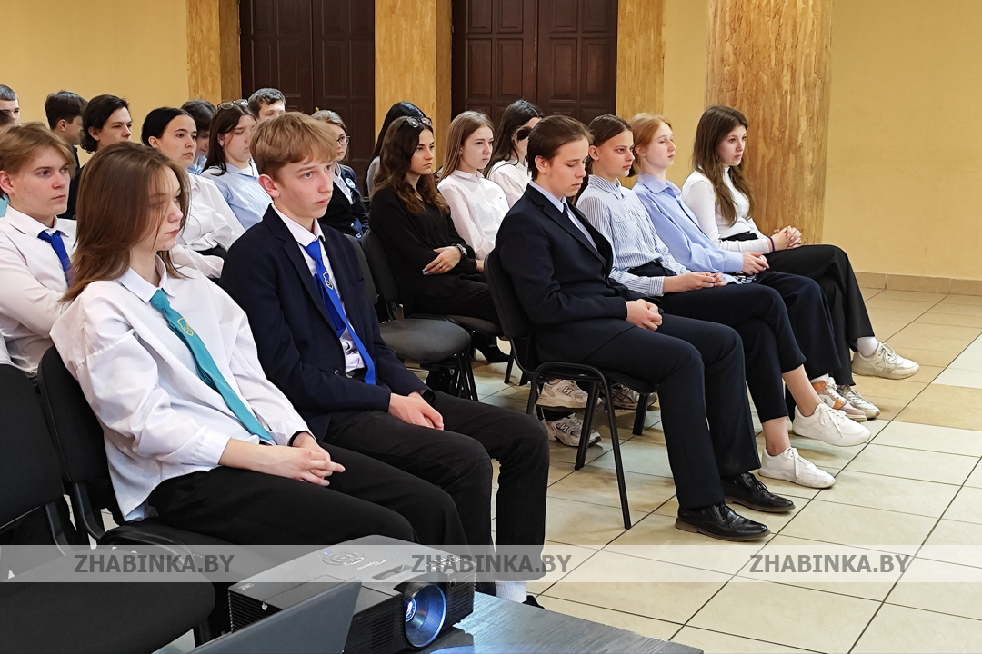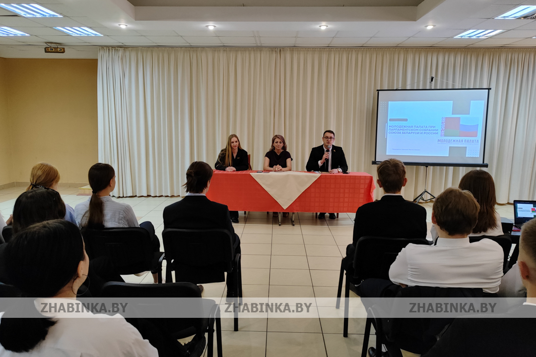 Инна Владимировна в своем выступлении рассказала о сотрудничестве Жабинковского района с Российской Федерации, а также о побратимских отношениях с ее регионами. Увидеть и больше узнать о совместных достижениях Союзного государства в сельском хозяйстве, промышленности, энергетике, медицине и образовании молодые люди могли во время ознакомительного видеоролика.