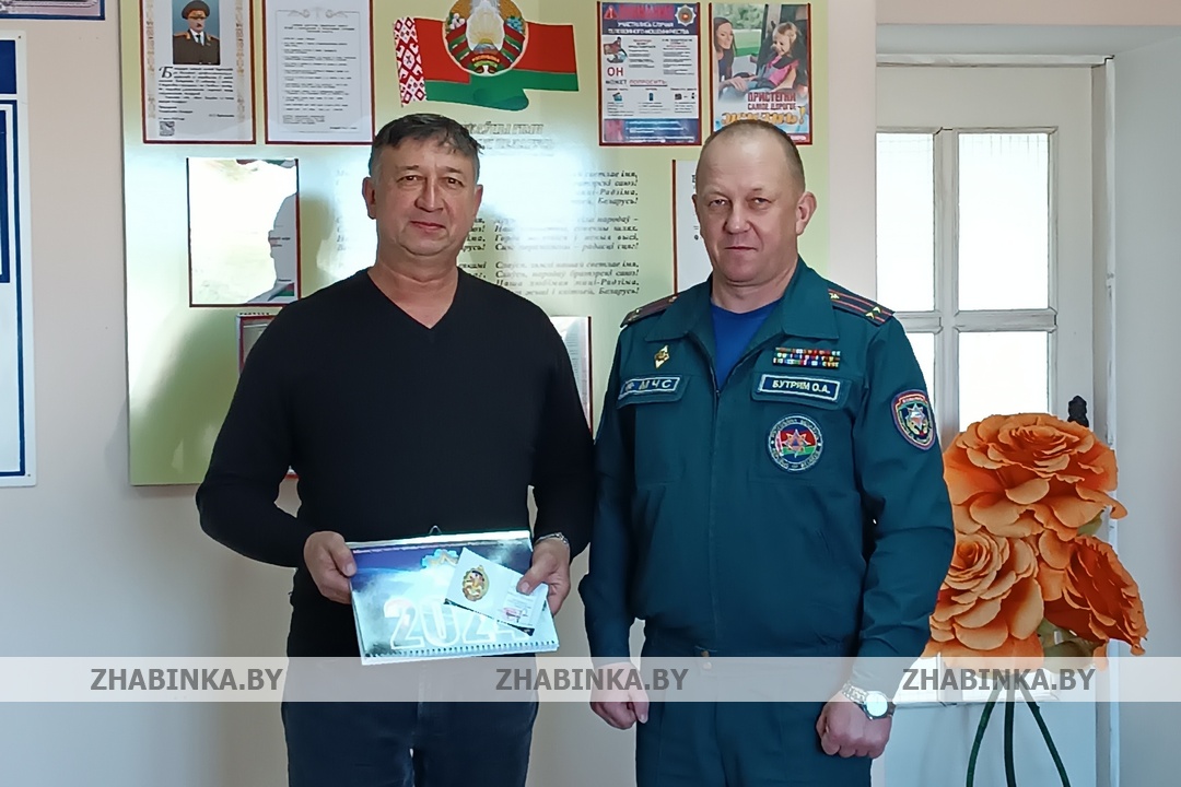 Начальник Жабинковского районного отдела по чрезвычайным ситуациям Олег Бутрим поблагодарил Сергея Отришко за безупречную службу, ответственное выполнение служебных обязанностей и вручил памятный нагрудный знак «165 год пажарнай службе».