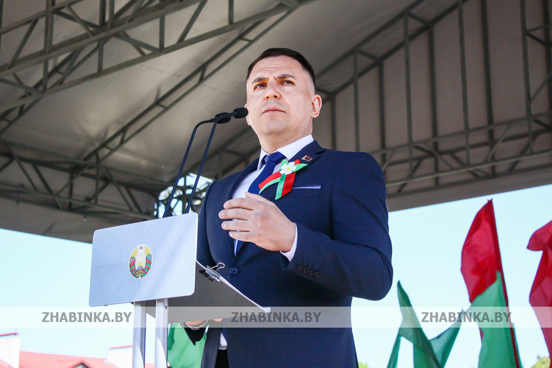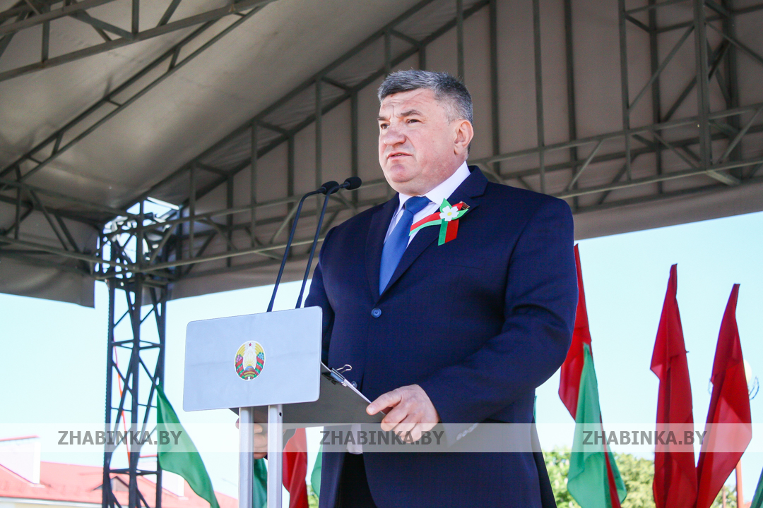 С приветственным словом к собравшимся по поводу важного государственного праздника обратился председатель Жабинковского районного Совета депутатов Андрей Иосифович Юруть. Он напомнил о значении символики для сплочения белорусской нации.