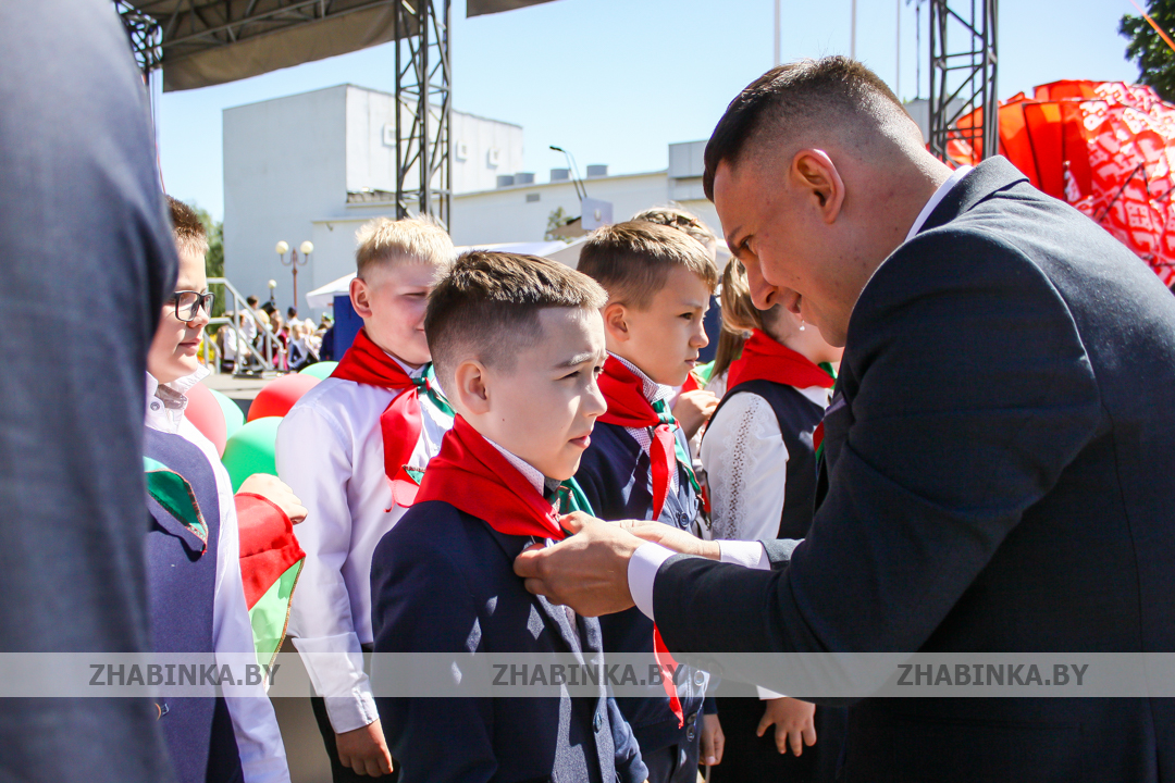 В торжественной обстановке руководство Жабинковского района повязало галстуки, окрашенные в красный и зелёный цвета, мальчикам и девочкам, вступающим в ряды пионерской организации. Думается, этот день и обстановка праздника, сопутствующая ему, надолго сохранится в памяти юных пионеров.