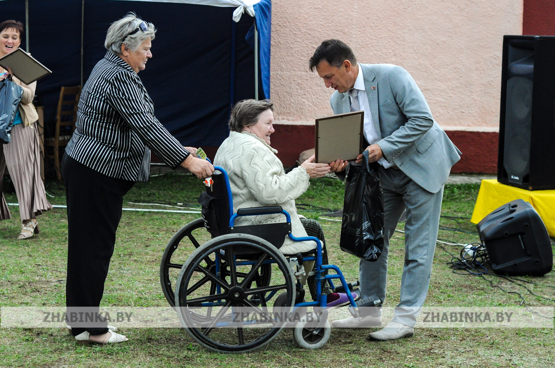 Далее слова благодарности в адрес жителей агрогородка, известных своим трудолюбием, высказал начальник участка «Большие Яковчицы» открытого акционерного общества «Жабинковский» Сергей Батура. Под рукоплескания земляков он продолжил церемонию чествования, наградив самого поющего и танцующего жителя древнего села, наилучшего сельского кондитера.