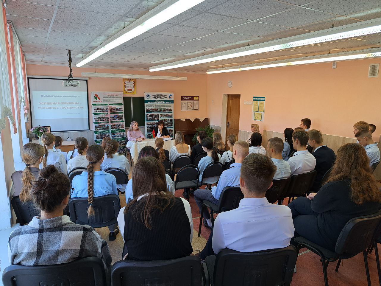 Инна Владимировна отметила актуальность темы в нашем обществе, ведь современные женщины играют значительную роль не только в жизни семьи, но и в развитии государства. Они становятся лидерами в различных сферах: науке, бизнесе, политике и социальных инициативах. В разговоре с учащимися она привела в пример белорусских женщин-лидеров, которые успешно совмещают роли руководителя, жены и матери.
