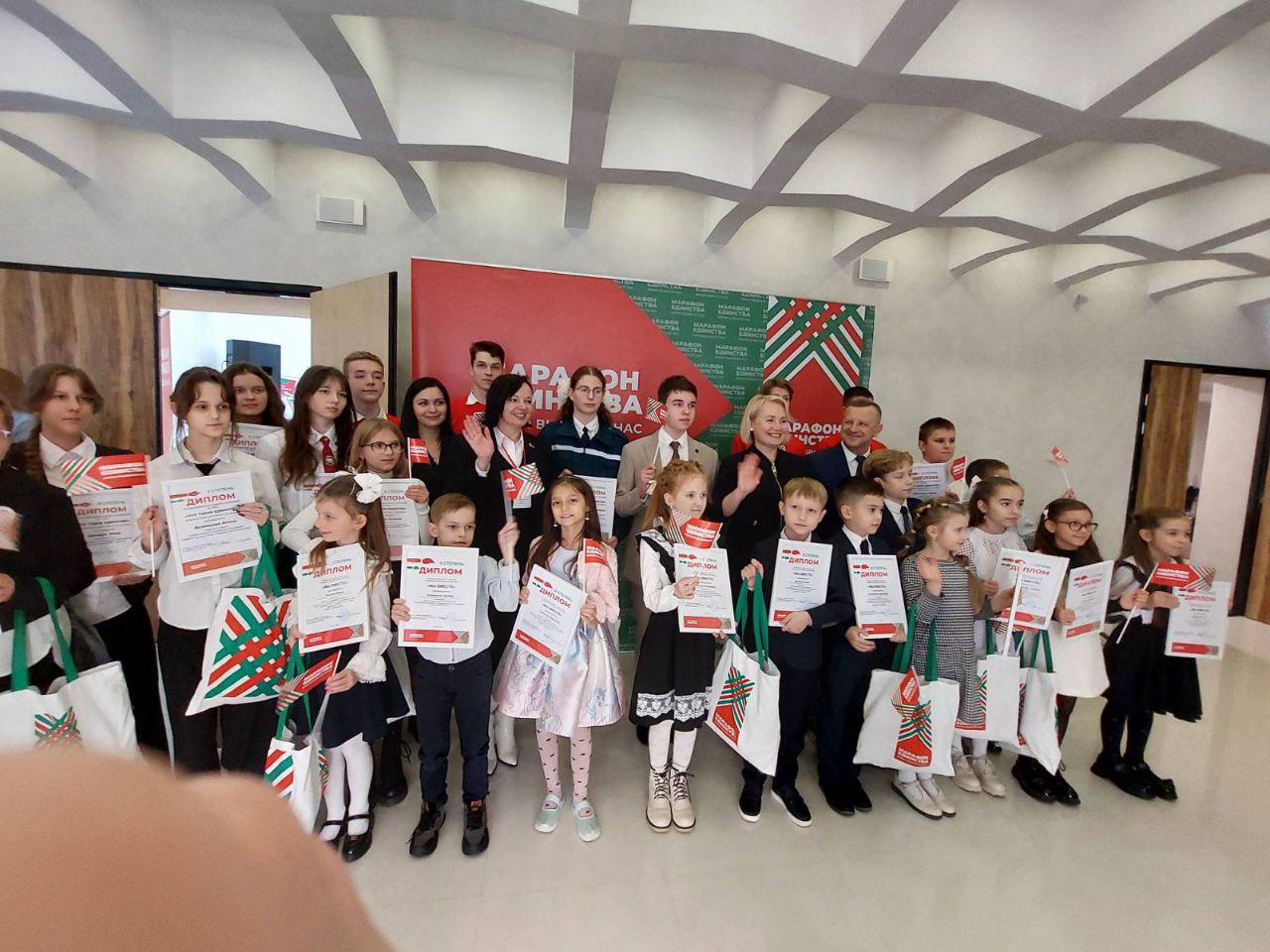 Также награждены ребята – победители конкурса сочинений «Что такое единство?». Награды им вручил заместитель председателя Брестского облисполкома Вадим Васильевич Кравчук.