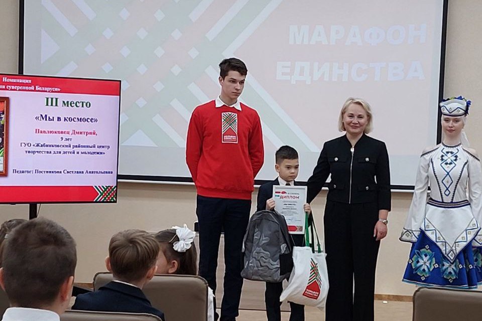 В рамках республиканской акции «Марафон единства» проходил открытый конкурс рисунка учащихся начальных классов «Мы вместе». Поздравляем учащегося объединения «Карандаши» Жабинковского районного центра творчества для детей и молодёжи Дмитрия Павлюковца и педагога Светлану Анатольевну Постникову с победой!