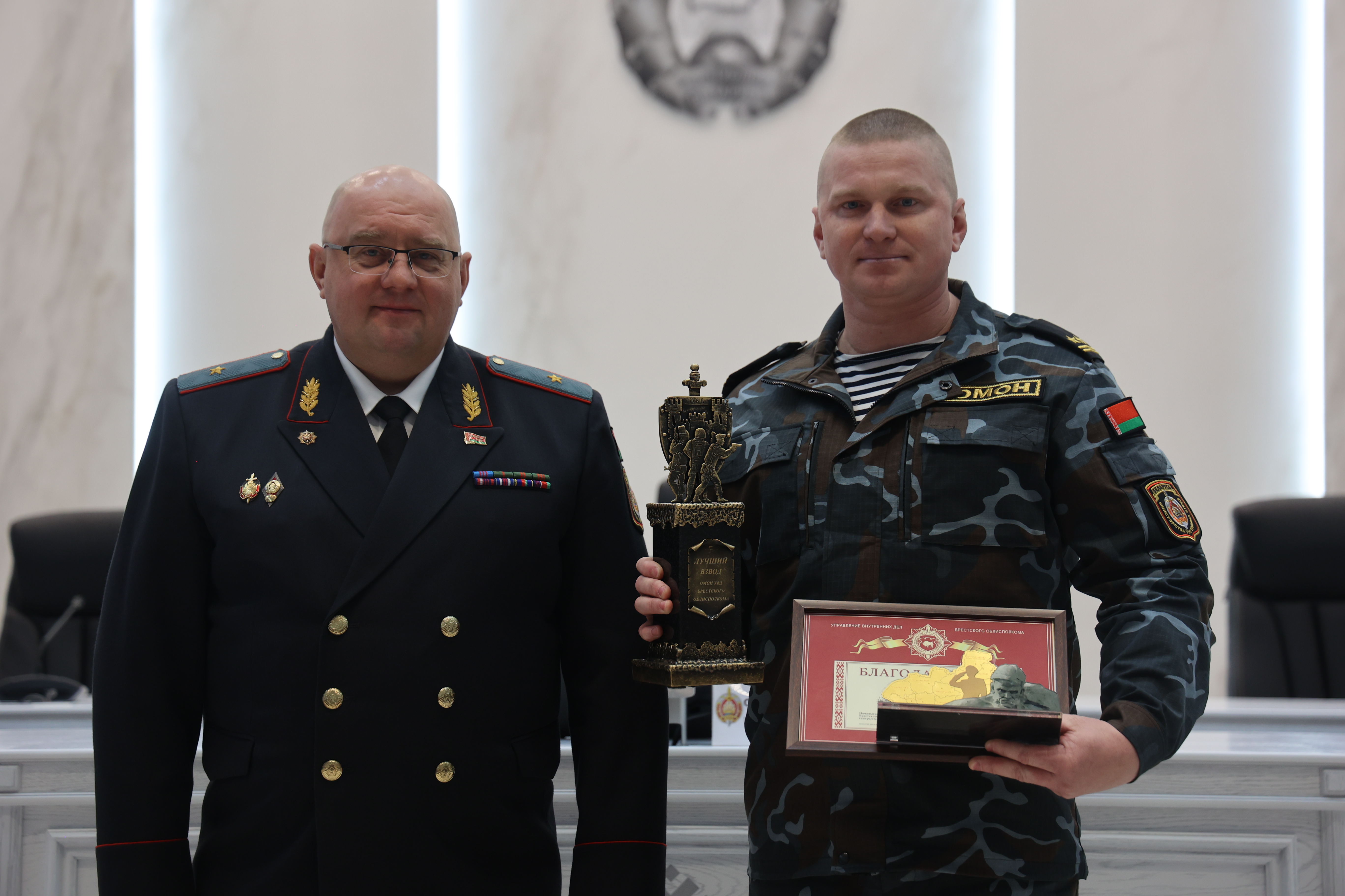Так, почетным переходящим призом отряда милиции особого назначения награжден командир взвода оперативной роты ОМОН УВД подполковник милиции Виктор Забаренко, переходящим призом имени Жигальцова Николая Николаевича – начальник отделения розыскной работы УР Барановичского ГОВД старший лейтенант милиции Илья Великевич, переходящим призом имени Шоломицкого Александра Яковлевича – старший участковый инспектор милиции ООПП Пинского ГОВД майор милиции Вадим Мемех, призом имени Наумовича Леонида Иосифовича награжден милиционер группы ППСМ Столинского РОВД старший сержант милиции Радомир Микулич, а переходящий приз имени Астафьевой Татьяны Дмитриевны увез в свой отдел участковый инспектор ИДН Столинского РОВД лейтенант милиции Владислав Буян.
