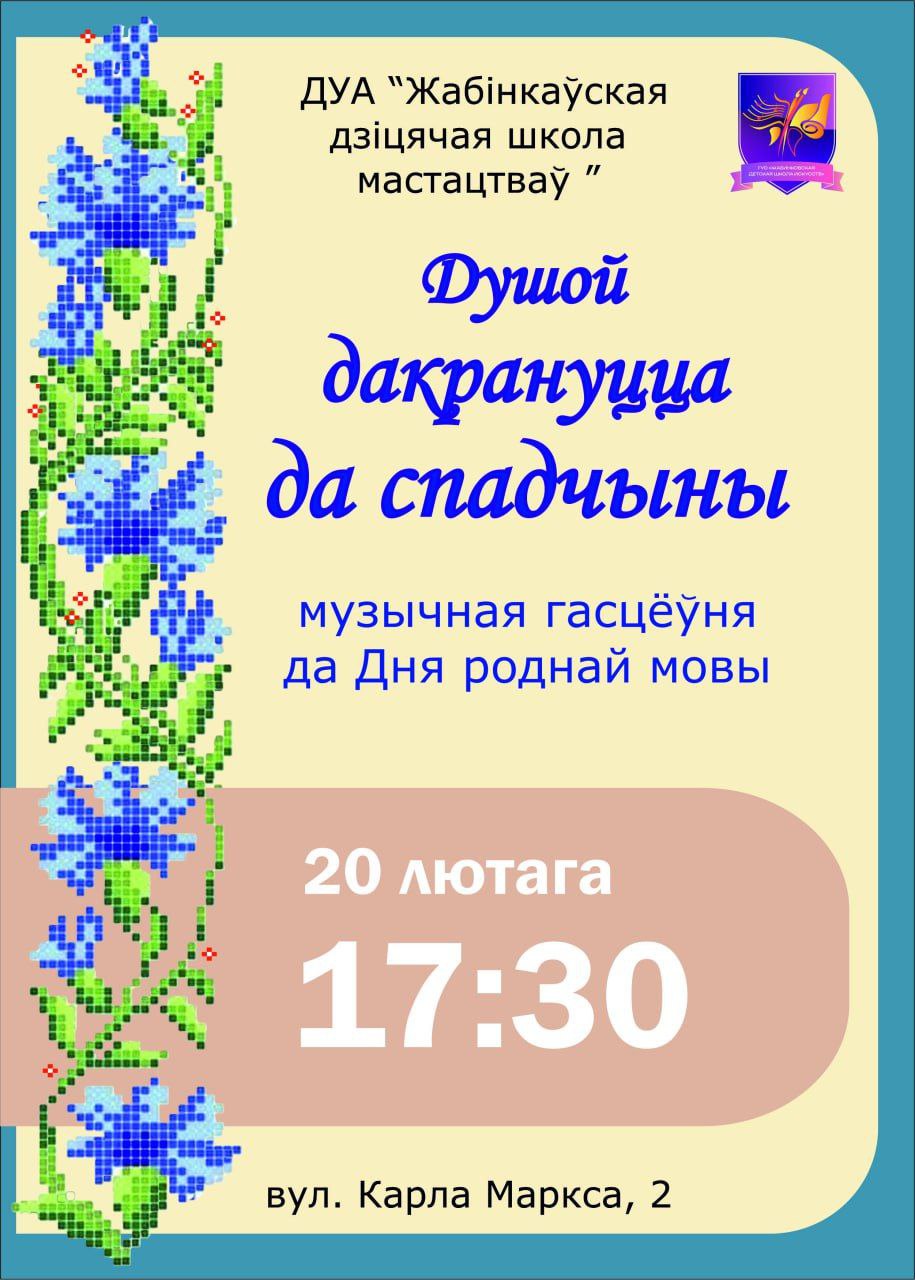 Жабінкаўская дзіцячая школа мастацтваў запрашае вас на ўтульную і цёплую сустрэчу ў нашай «музычнай гасцёўні», прысвечаную Дню роднай мовы.