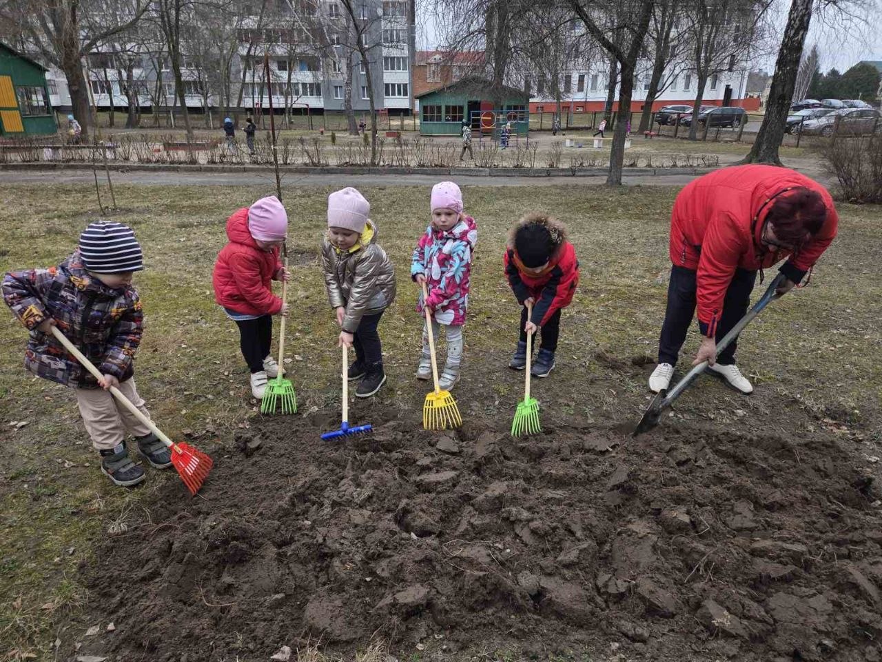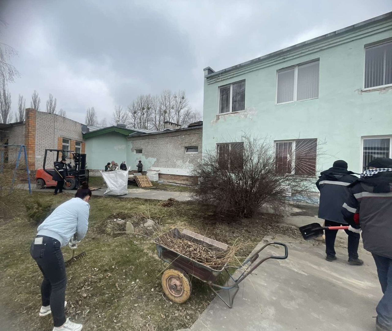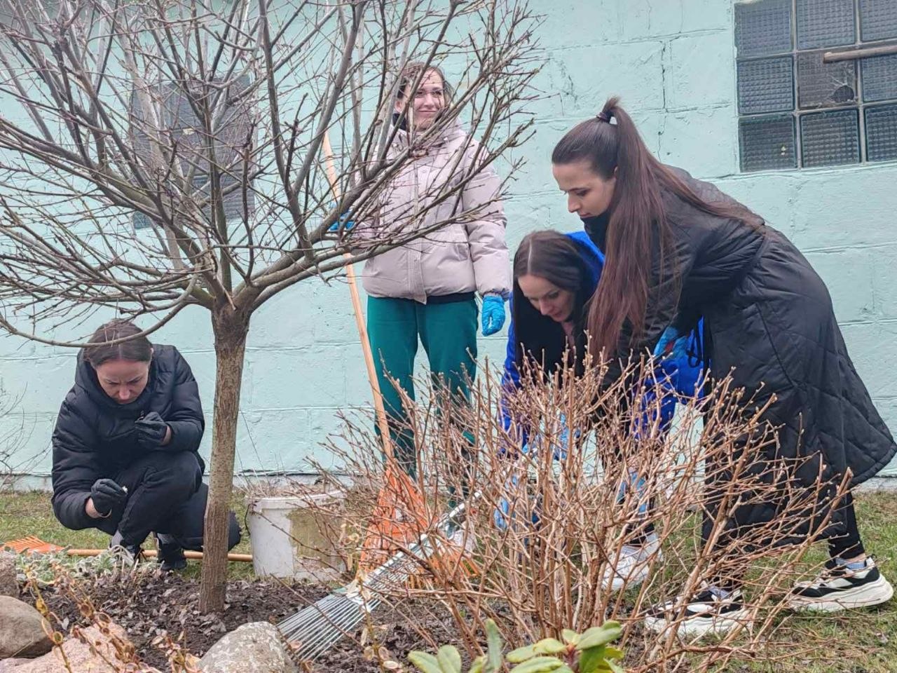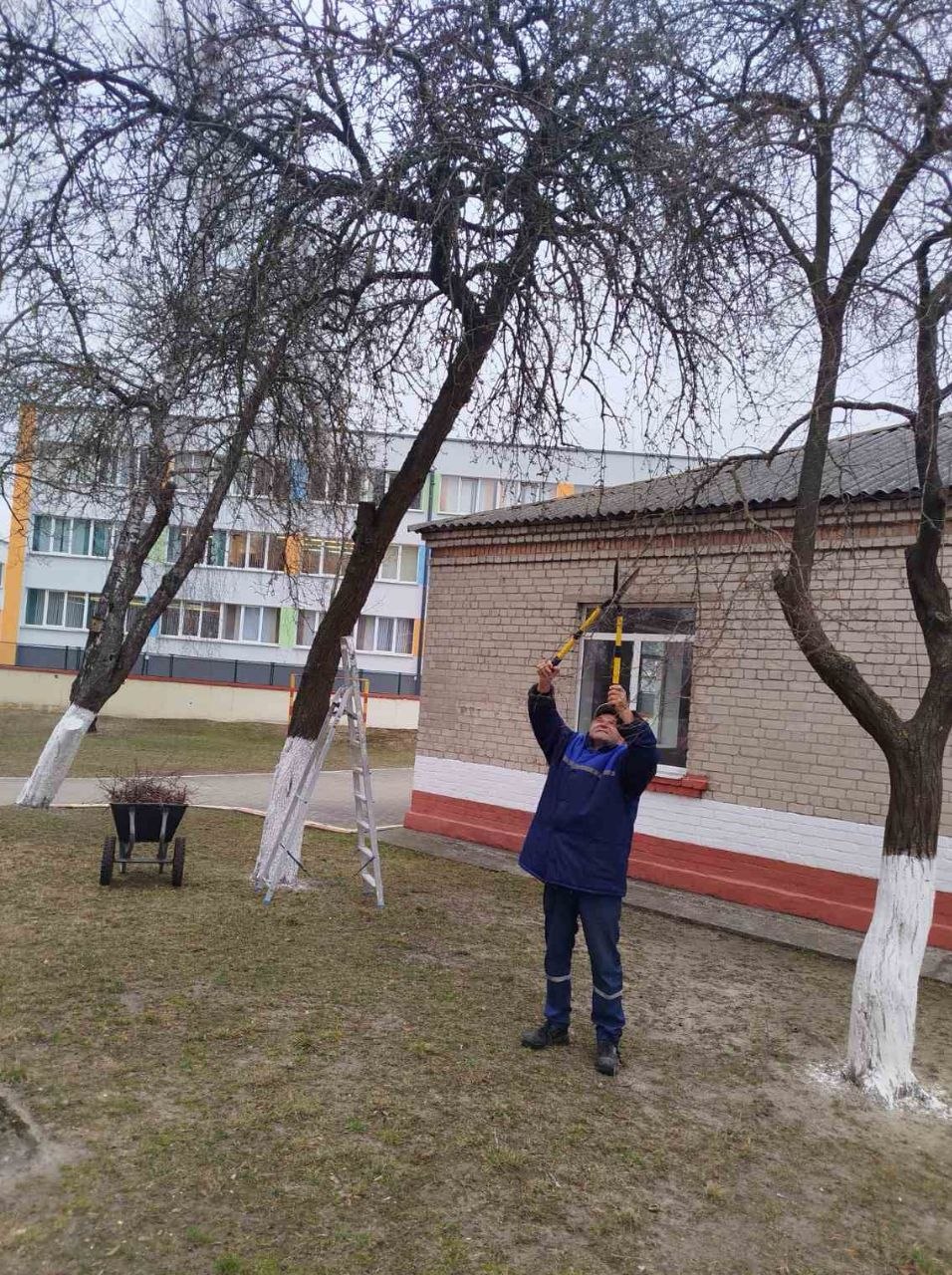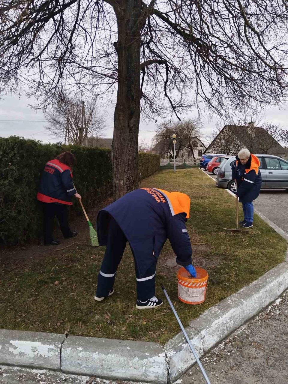 Особое внимание трудовой десант уделяет уборке прошлогодней листвы, ремонту и покраске малых архитектурных форм, побелке деревьев и бордюров.