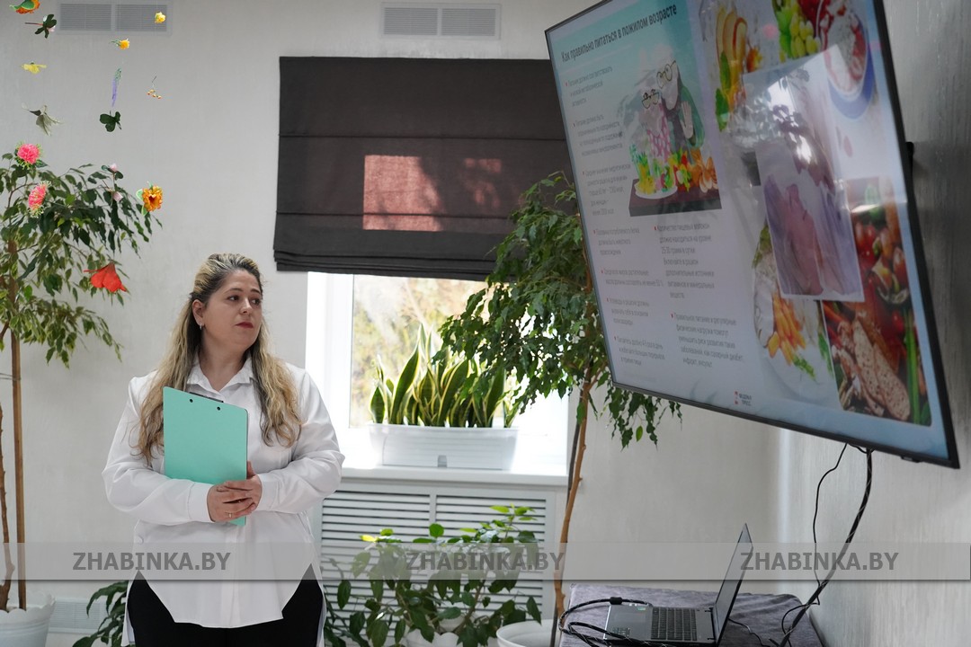 В Жабинковском территориальном центре социального обслуживания населения в рамках проекта «Жабинковский район – здоровый регион» прошла встреча с инструктором-валеологом районного центра гигиены и эпидемиологии Еленой Егоровой.