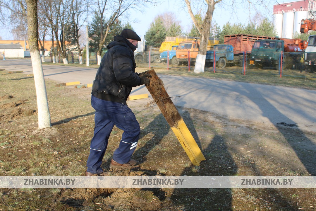 Удалением аварийных деревьев, а также санитарной подрезкой занимались работники Жабинковского ЖКХ, заменой дорожных знаков, засыпкой щебнем разворотных площадок, установкой бордюрного камня на стоянке у центрального въезда – работники Жабинковского ДРСУ-103.