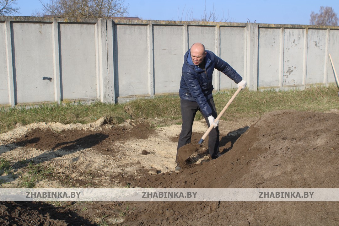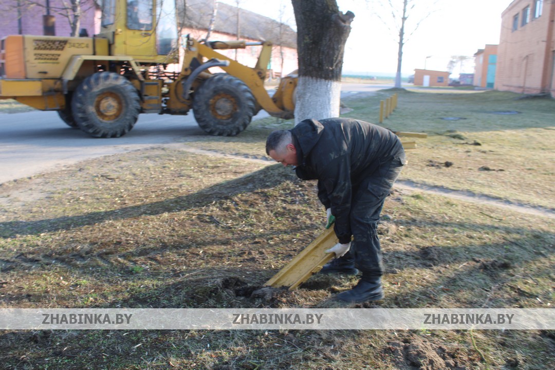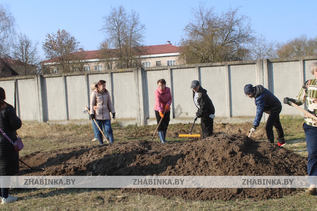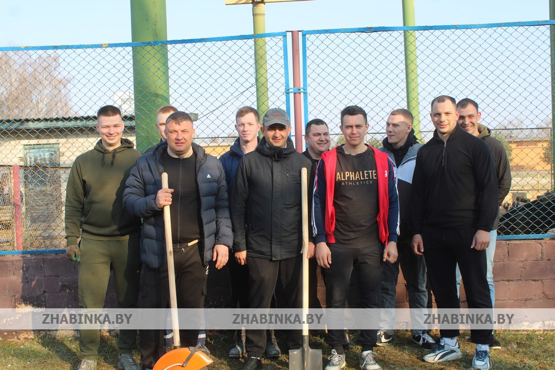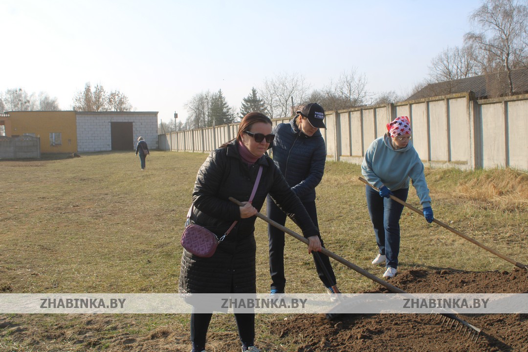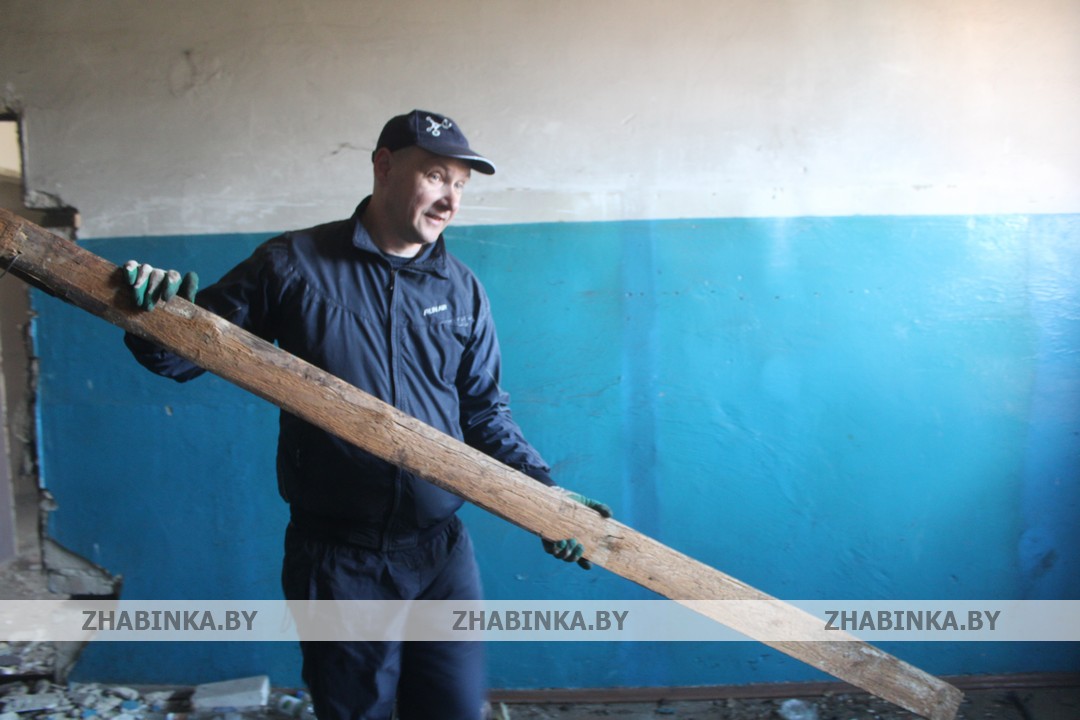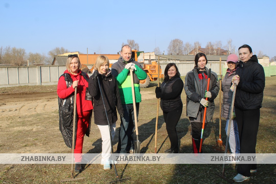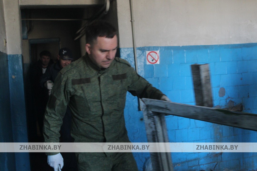 Демонтаж конструкций во внутренних помещениях здания ангара, выравнивание грунта на территории за проходной были доверены сотрудникам управлений и отделов Жабинковского райисполкома, центра обеспечения деятельности бюджетных организаций, ЦБУ №109 ОАО «АСБ Беларусбанк» и ЦБУ №102 ОАО «Белагропромбанк», управления по работе с плательщиками по Жабинковскому району и др.