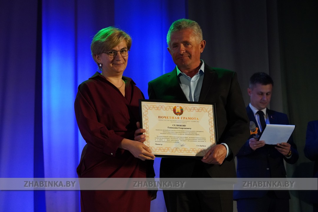 Начальник жилищного отдела Брестского областного управления жилищно-коммунального хозяйства Елена Ульчик, в свою очередь, нашла множество приятных слов в адрес жабинковских коллег. Елена Романовна также наградила отличившихся работников Почётными грамотами Министерства жилищно-коммунального хозяйства и Почётными грамотами Брестского областного управления жилищно-коммунального хозяйства.