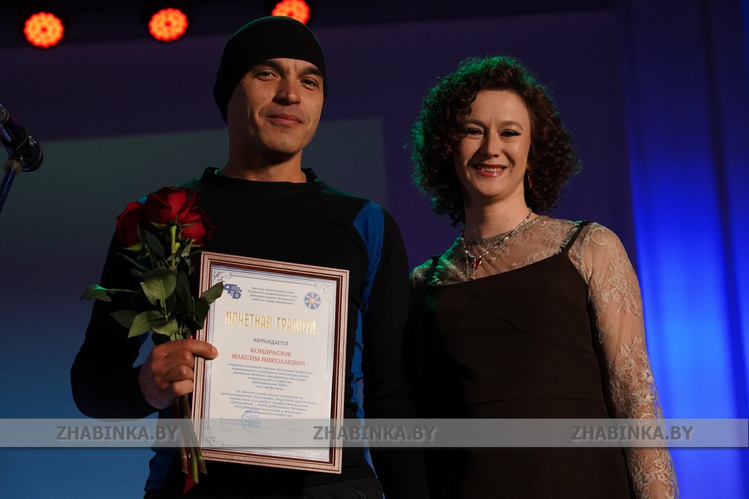 Не остались в стороне в этот праздничный день и профессиональные союзы. Так, председатель первичной профсоюзной организации Жабинковского ЖКХ Евгения Левчук провела церемонию награждения, вручив оператору котельной участка «Котельное хозяйство» Максиму Кондрасюку Почётную грамоту Брестской областной организации профсоюзов.