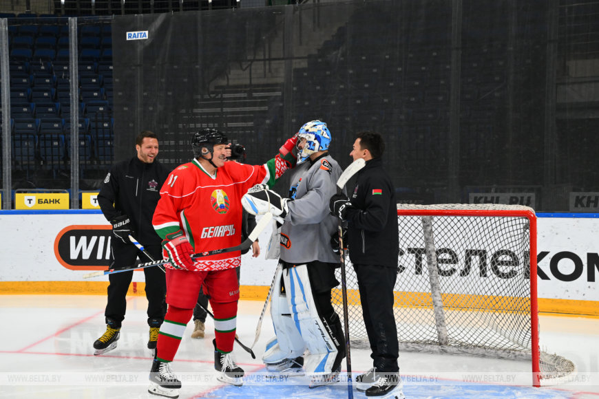 «Молодцы, защитники очень хорошо (сработали. — Прим. БЕЛТА), нападающие. А то, что Виталий такой пас отдал нашему «Ак Барсовцу» (речь о передаче Виталия Пинчука в решающей игре с «Динамо-Москва» в адрес Станислава Галиева, который прежде выступал за «Ак Барс». — Прим. БЕЛТА), — это вообще чудо. Молодцы. Такой бросок очень правильный», — оценил игру Александр Лукашенко.
