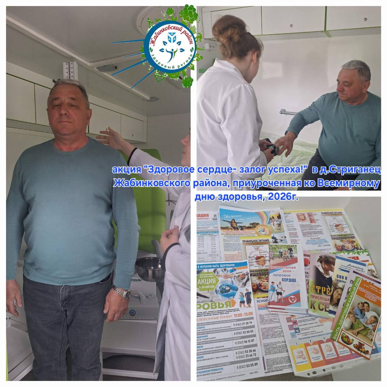 9 апреля в деревне Стриганец Жабинковского района проведена акция «Здоровое сердце – залог успеха! на передвижном ФАПе, приуроченная к информационно — образовательной кампании «Мы едины в желании быть здоровыми!».